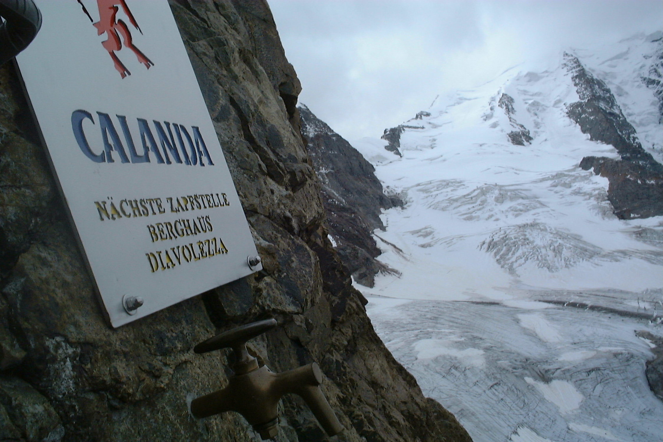 Tourenbeginn nach der Regennacht um 06:15 Uhr mit dem Aufstieg vom Parkplatz unterhalb der Talstation der Diavolezza-LSB bei 6°C. Morgens gab es noch Sicht zum Berninnapass und seinen Seen. Danach kam der Hochnebel von der Pass-Seite hinauf.