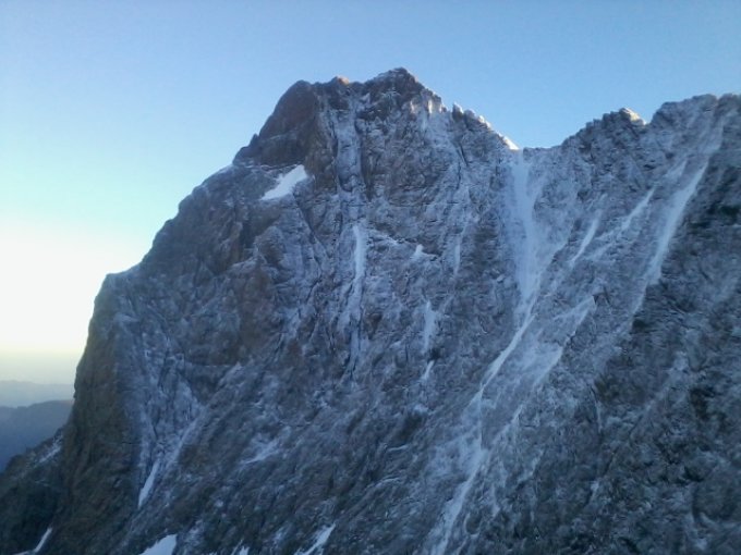 Nach Kaltfront war der SW-Grat, Schraubengang und SE-Grat ziemlich verschneit, aber machbar