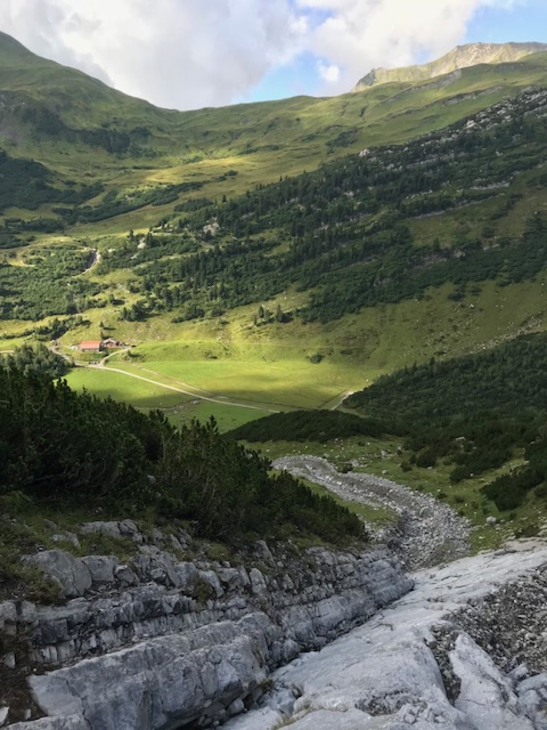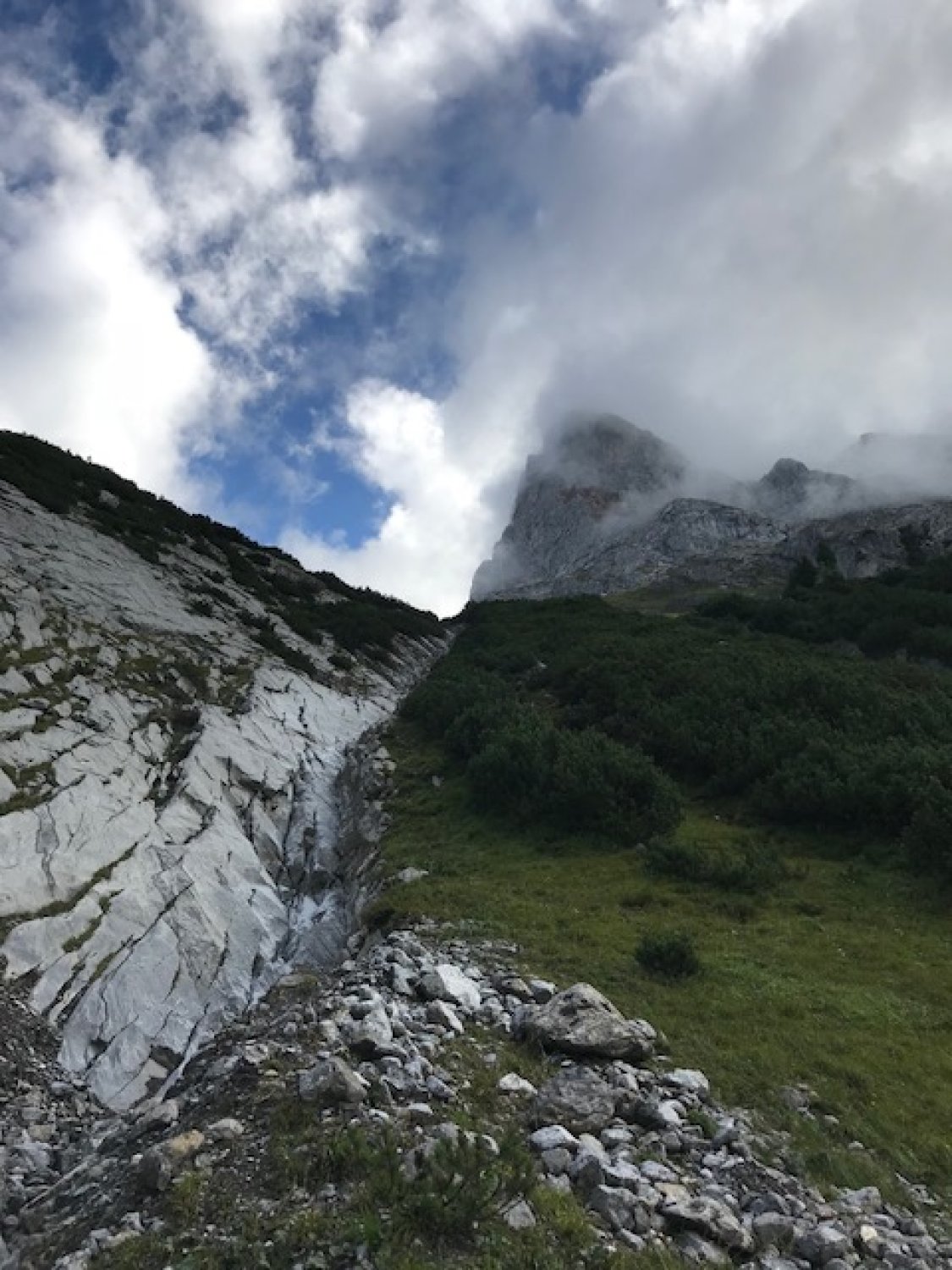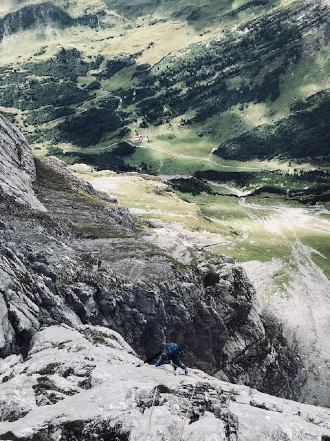 Es liegt einiges an losem Gestein in der Route. Wer aber gewohnt ist sich alpin im Kalk zu bewegen, kommt damit klar.
