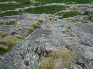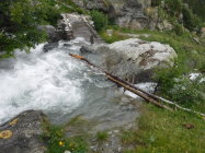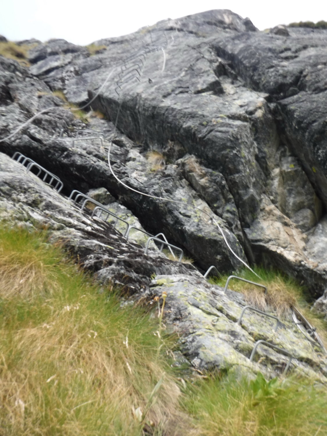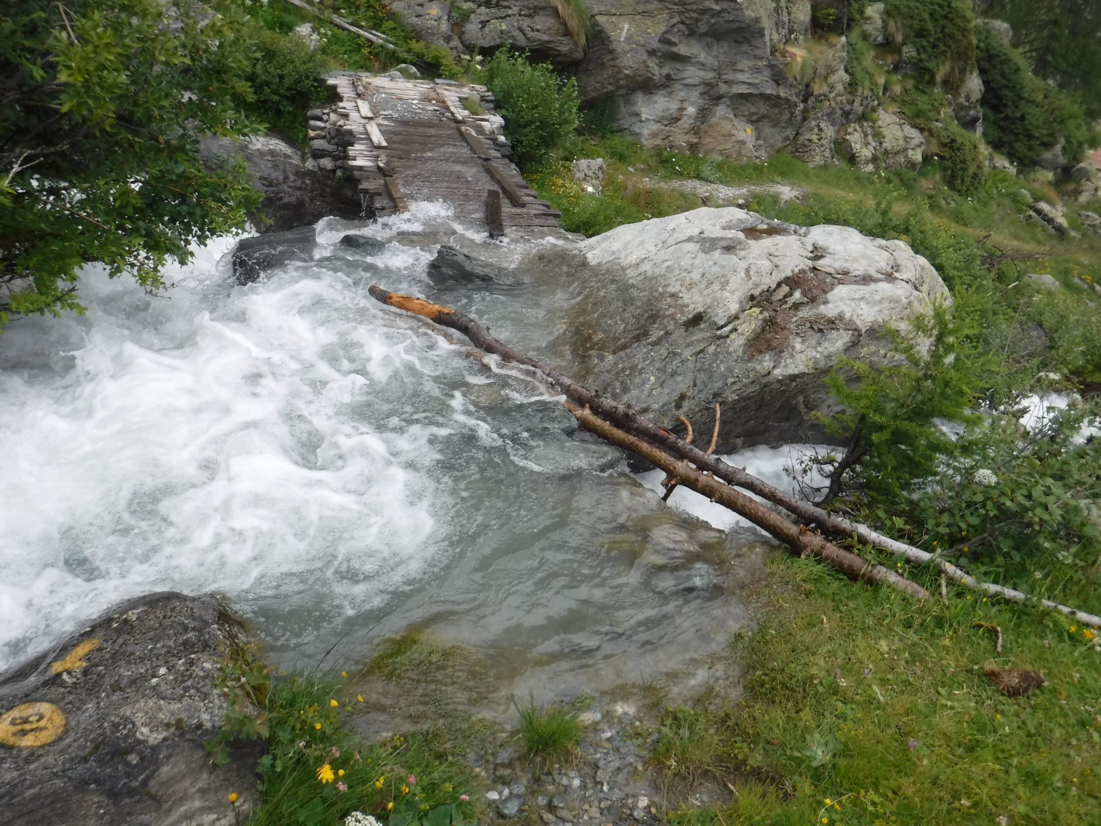 Tourenbeginn bei 16°C, morgens um 07:15 Uhr noch sonnig, später heiter. Im Abstieg dann allerdings in 2 heftige Gewittergüsse geraten. Die Brücke bei Miollet war danach so überflutet, dass man nun auch noch von unten gehörig nass wurde. Der schnellste Direktabstieg links vom oberen Bergsattel über den Sentiero via di fuga hinab zum Wanderweg Nr. 17, bzw. zum Wegweiser bei P 2180, ist durch einen Erdrutsch unmöglich geworden (Information am Einstieg). Oben gibt es noch etliche Altschneefelder.