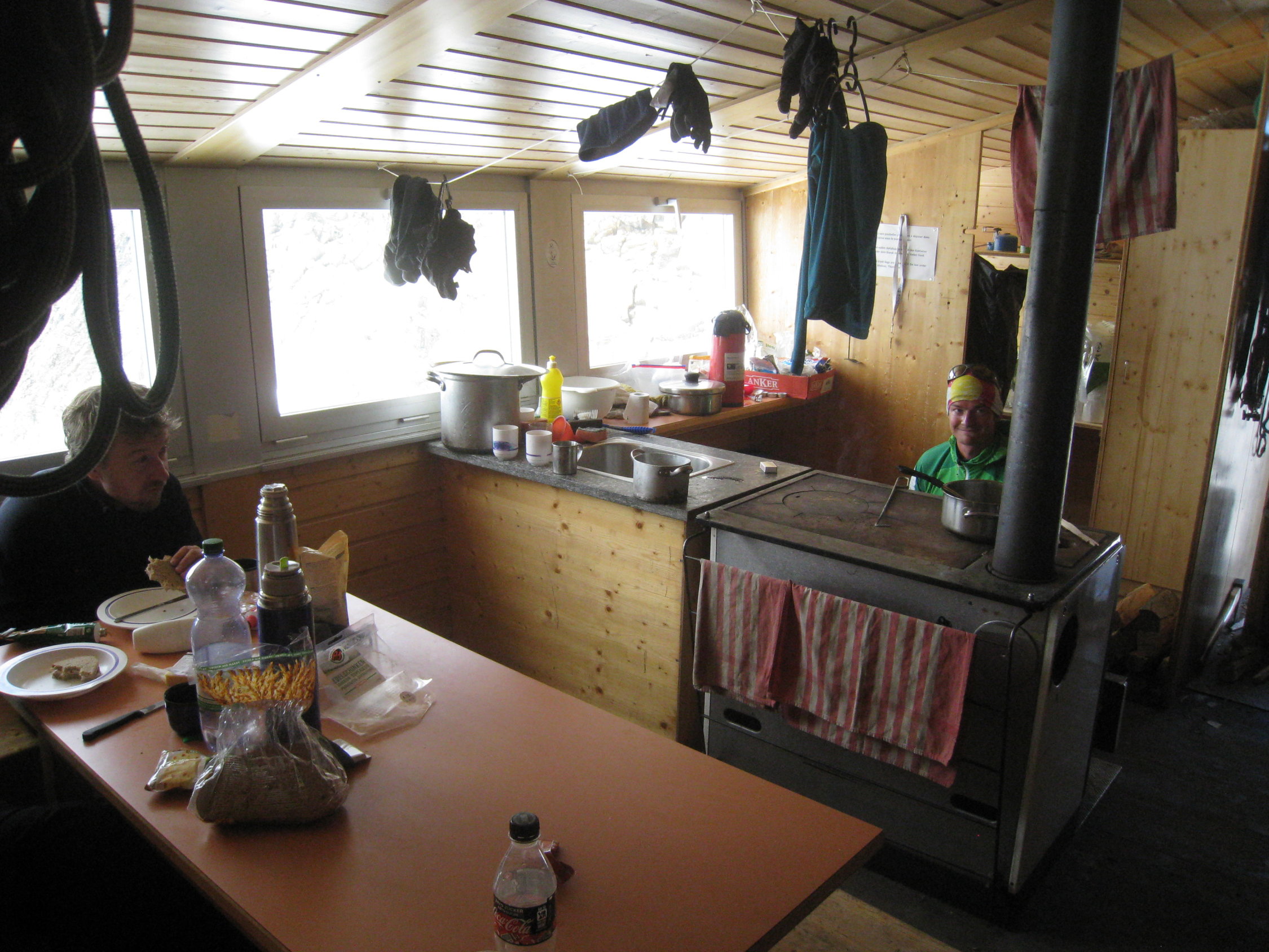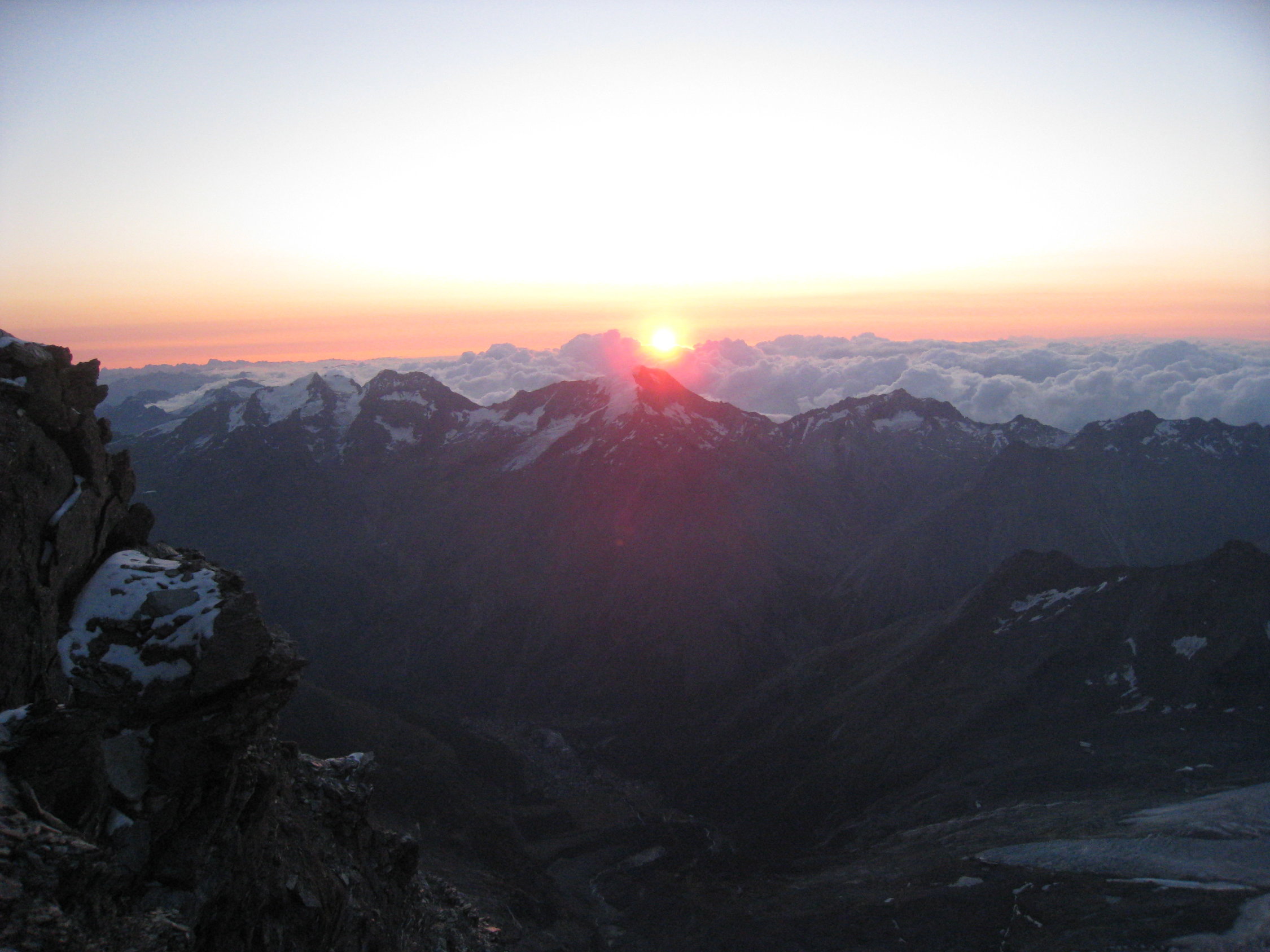 Das Biwak war in der Nacht von Mittwoch auf Donnerstag praktisch voll. Einige stiegen über den Weingartengletscher aufs Biwak und meinten, ganz am Rand komme man noch gut durch. Wir kamen über Allalinhorn und Alphubel - bei der Eisnase kommt jetzt das Eis durch. Das Schneeschmelzen ist bei so vielen Leuten eine Herausforderung, heute würde ich einen Gaskocher mitnehmen. Komischerweise gingen dann aber nicht alle auf das Täschhorn, somit gab es keine Probleme mit zu vielen Seilschaften.
