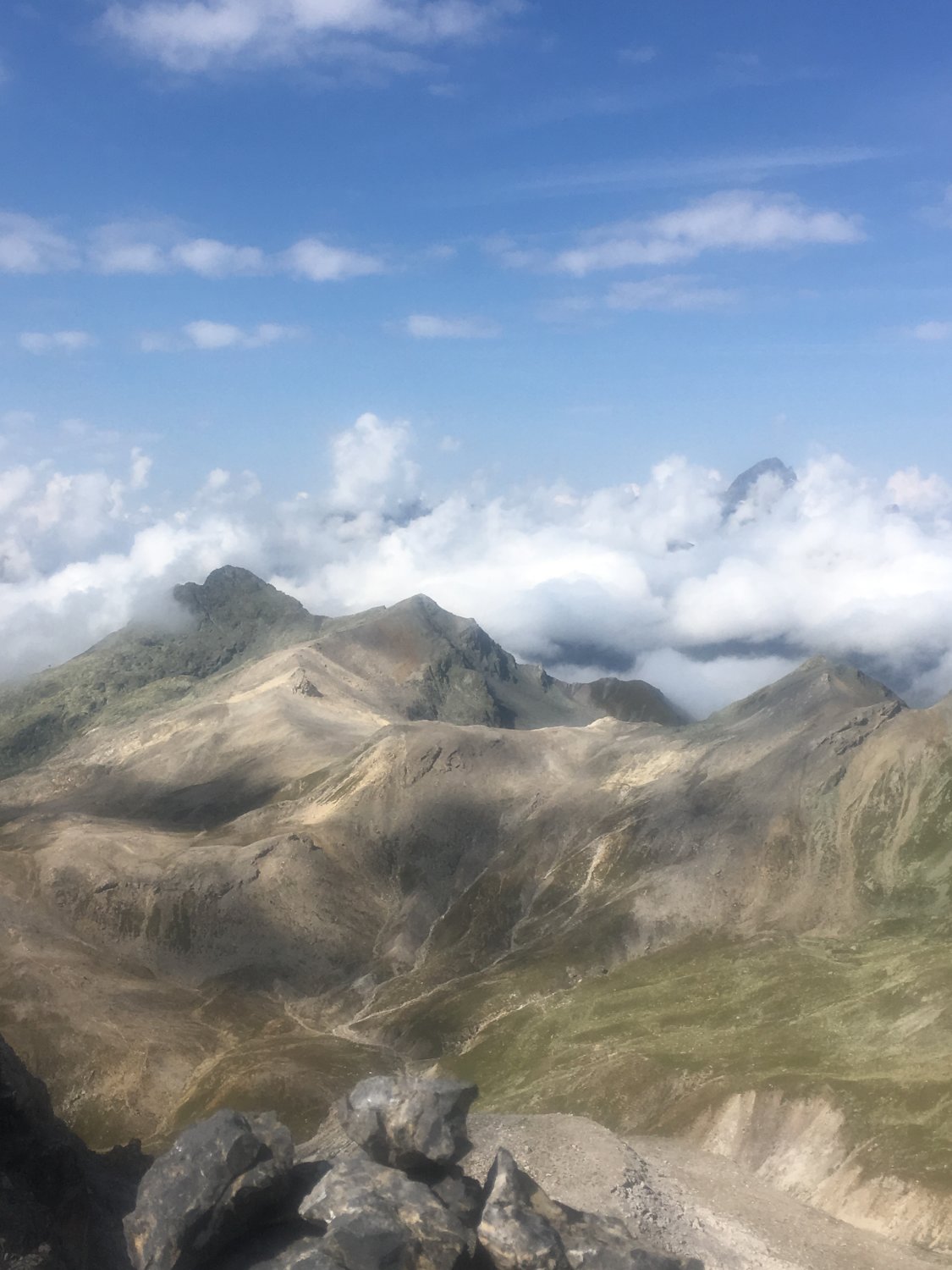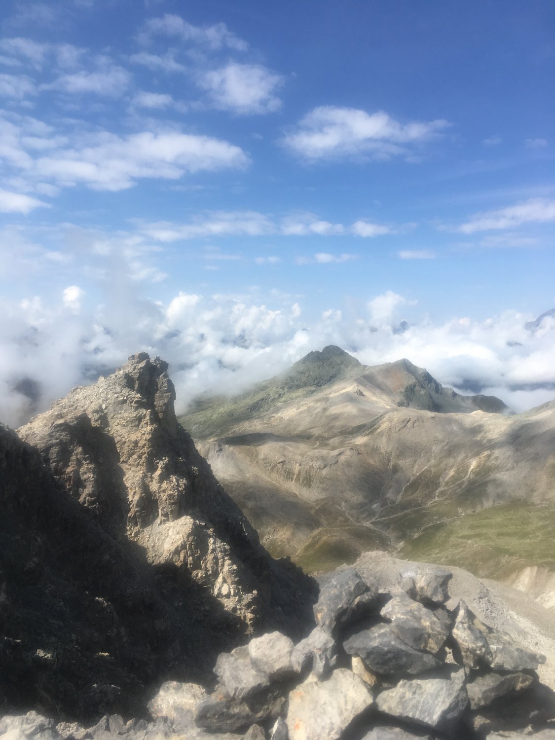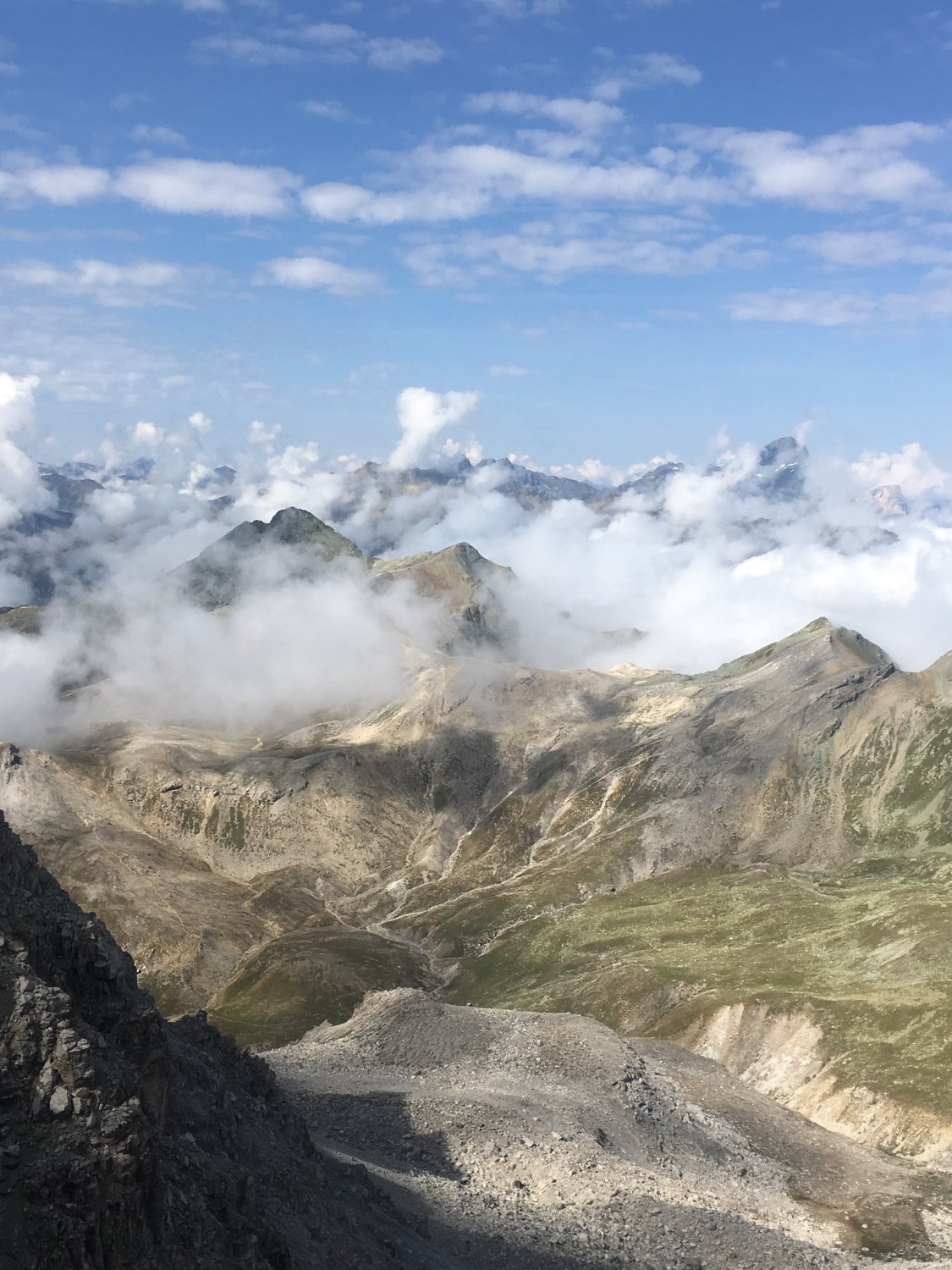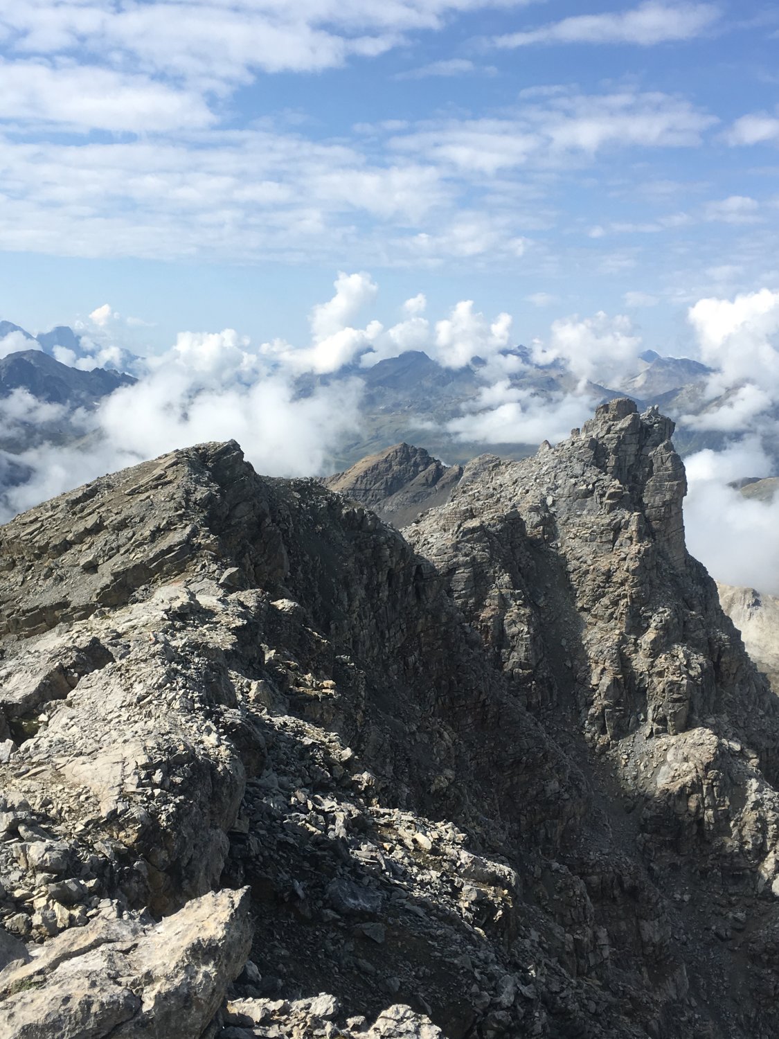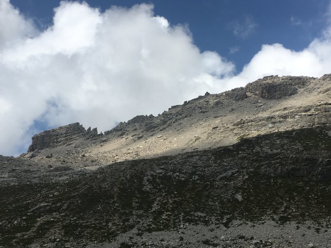 Start um 07.30 Parkplatz La Veduta, windstill, 9 Grad. Ich bin die Südflanke in schönstem Dolomitgestein und mässig steil hoch unter P. 2980 vorbei unschwierig auf Grat. Weiter bis Hauptgipfel, schöne Grattour in bestem Fels und meist nicht ausgesetzt, nur wenige luftige Stellen. Abstieg via Nordostgrat zu Fuorcla Alva (T4). Die Variante über P. 2980 ist etwas anspruchsvoller (T5).