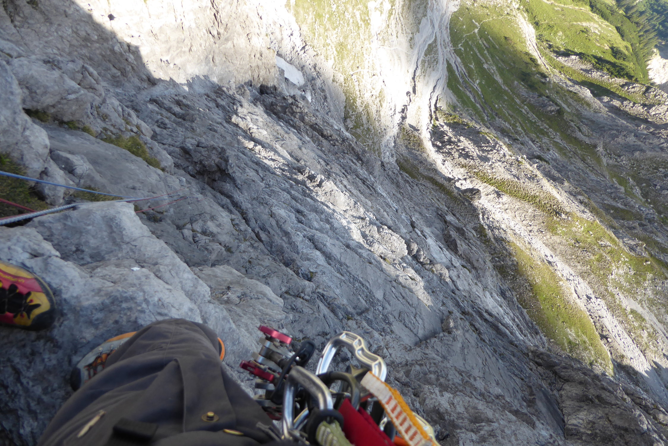 Die jacke musste für den standplatz in den ersten Seillängen herausgeholt werden.