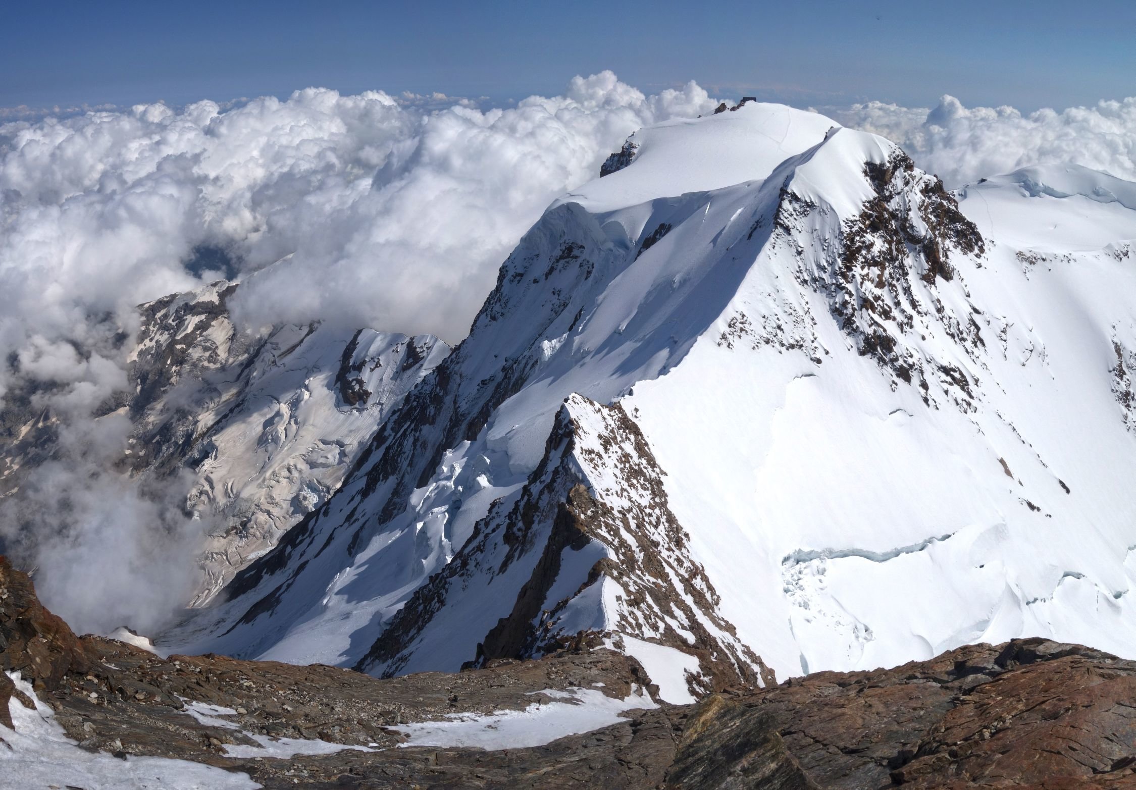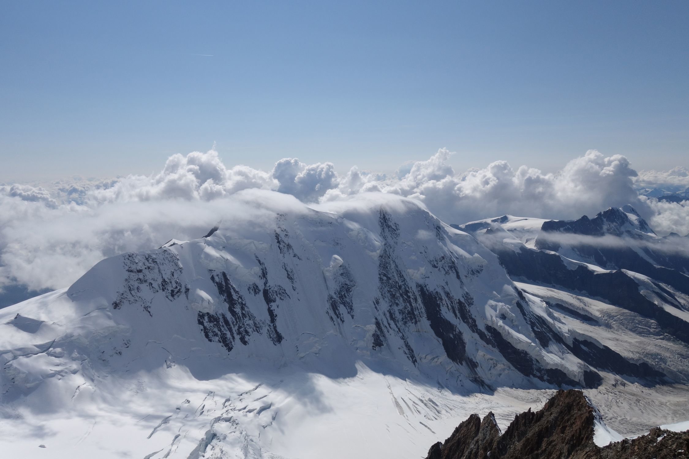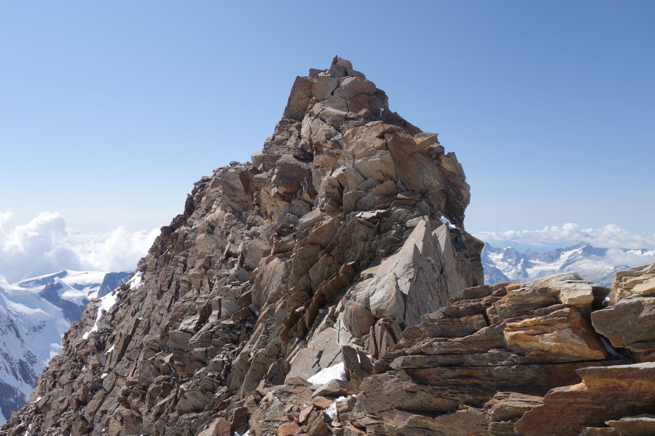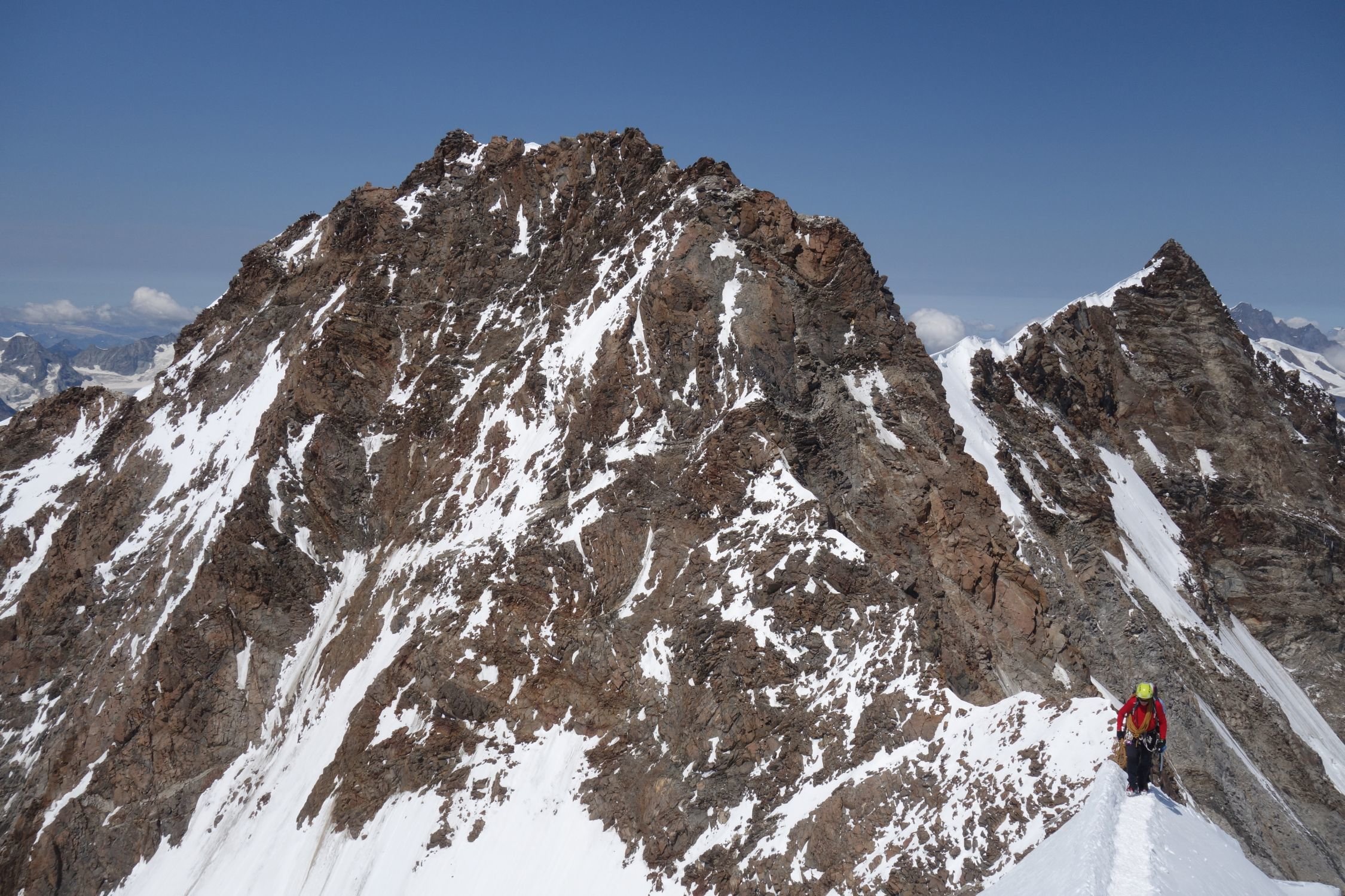 wir hatten morgens bereits die Lisskammüberschreitung ab Ayashütte gemacht, da bot sich die Dufourspitze bestens zur Vollendung der Runde an. Herrliche Kletterei mit grandioser Aussicht. Abstieg via Westgrat zur Monte Rosa Hütte.