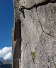Einer der Top -Routen schlechthin! Offener Riss im 7 Grad. Absichern mit sechser und Fünfer Camalots.