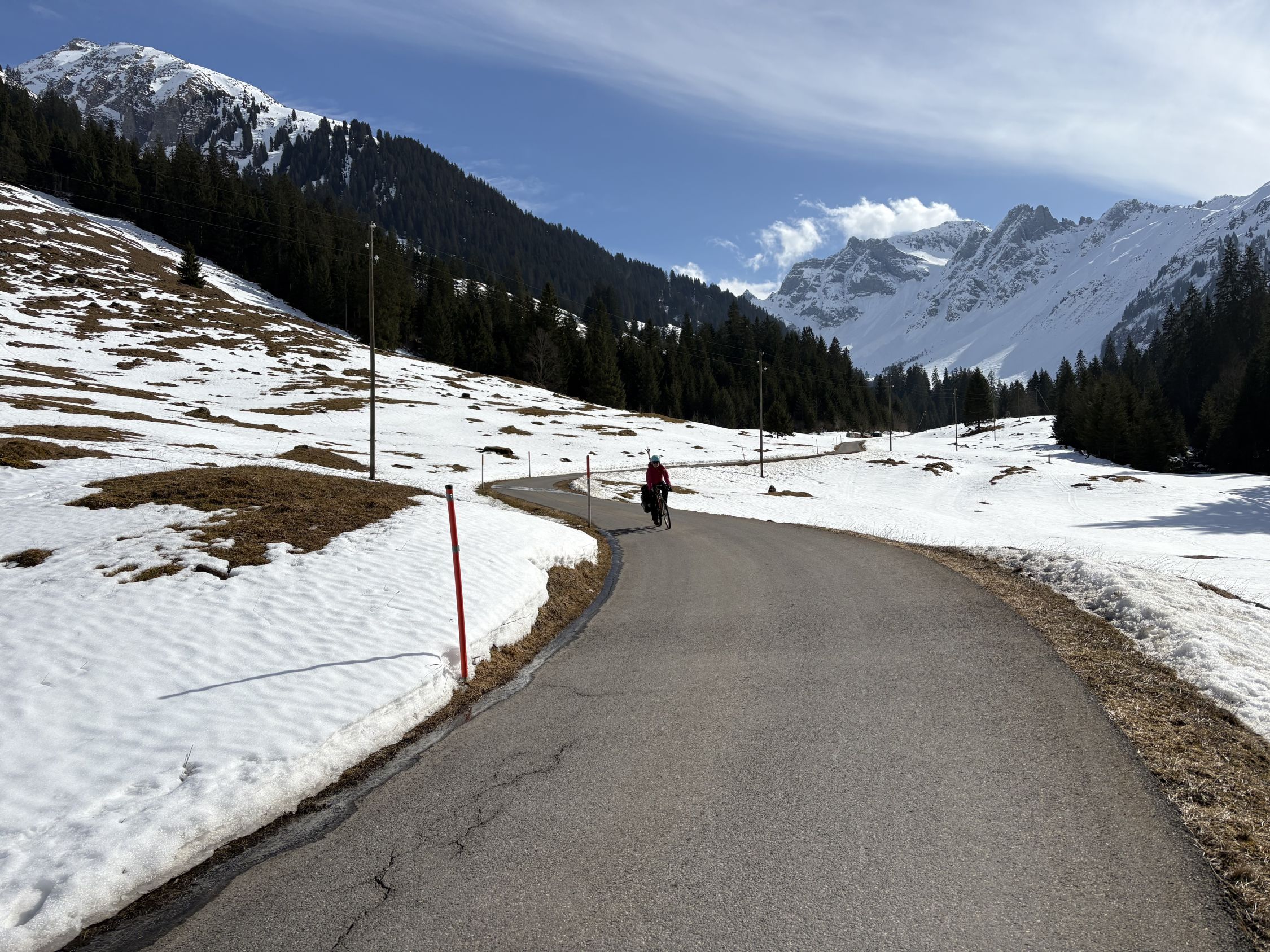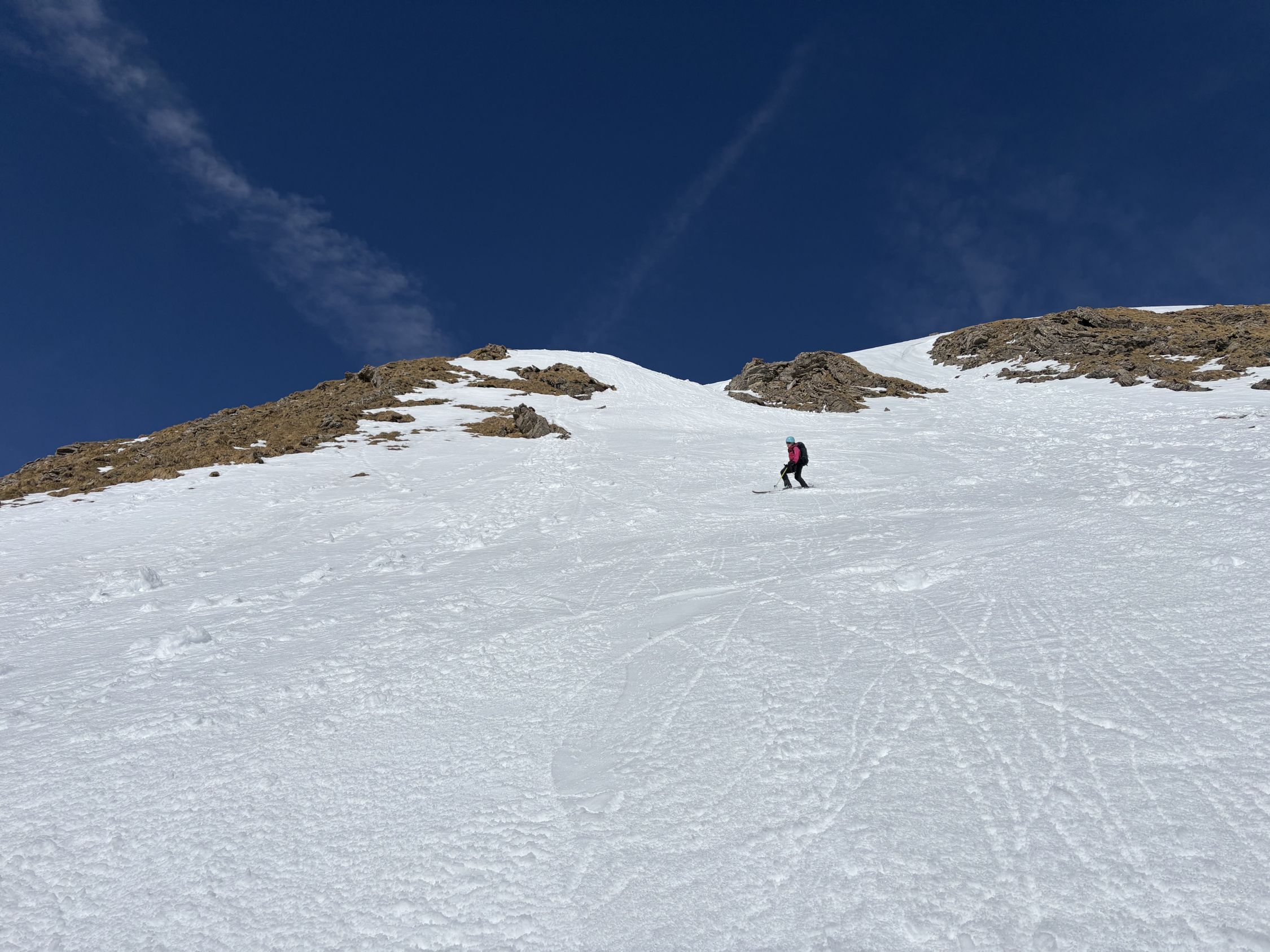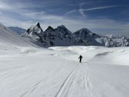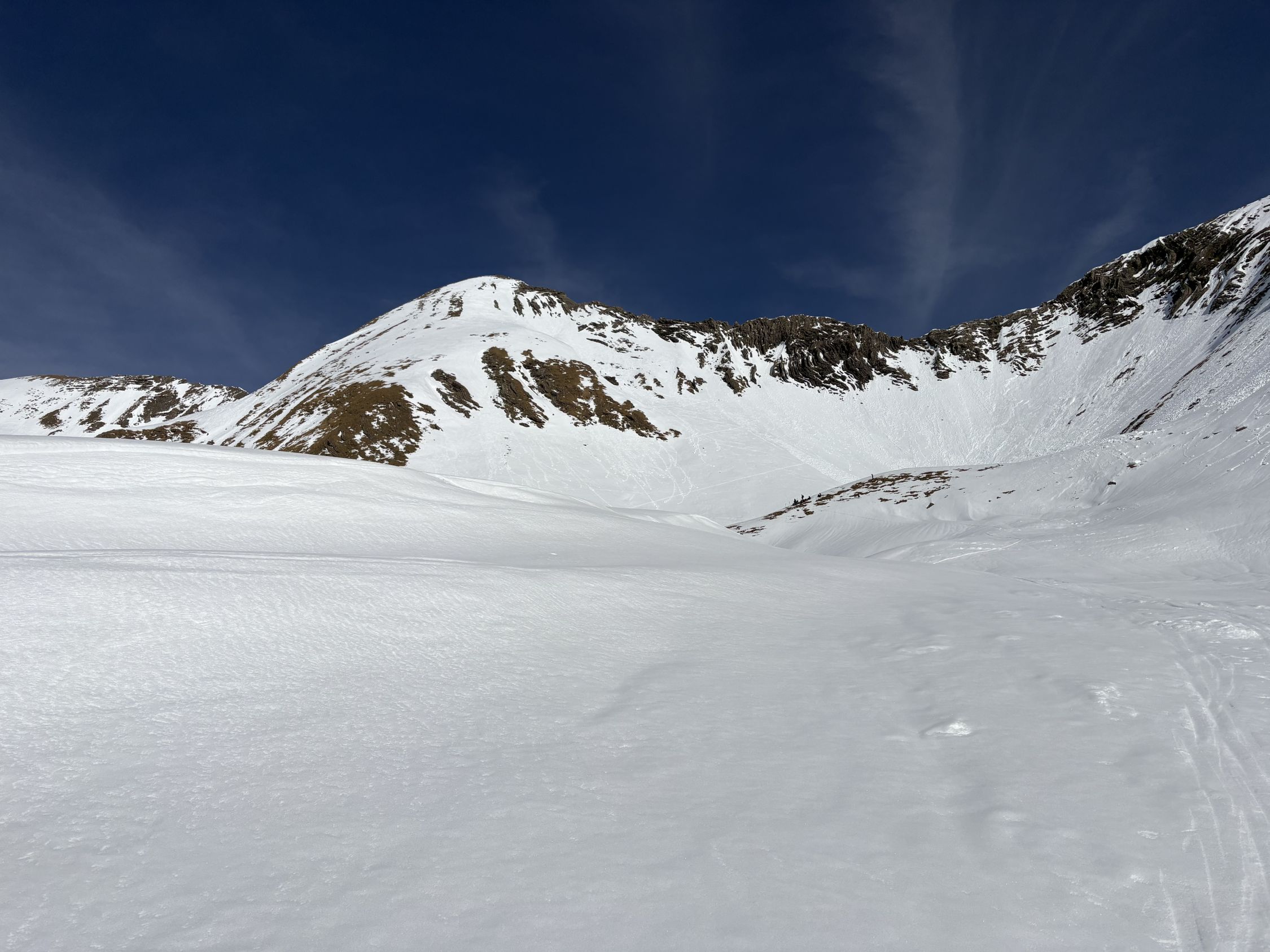 Wetter besser als vorhergesagt, nur wenige Wolkenschleier vor der Sonne. Start um 9:15 im Fildrich. Schnee ab Fildrich, in der Früh noch hart. Wir sind ausnahmsweise nicht durch den Wald sondern aussen rum über den Forstweg zum Mittelberg. Dort dann Schnee schon leicht sulzig. Vom Oberberg ins Obertal den direkten Weg, wie üblich, rechts rum läge relativ viel Lawinenschnee. Gipfelhang dank Sulz ohne Harscheisen gut zu gehen. Es hat oben allerdings nicht allzu viel Schnee, die direkte Variante links rum ist momentan nicht durchgängig.