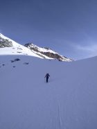 Über Normalroute zur Schneeglocke. Beim Steilaufschwung bevors zum Gipfel geht Harscheisen von Vorteil.