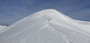 Bei späterer Abfahrt wird die Tragfähigkeit des Schnees nachlassen. Die aperen Stellen auf dem Sommerweg werden länger.
