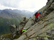 Erdige und schattige Stellen noch leicht feucht, Fels trocken, ges. Route schnee- und eisfrei. Wetter morgens sonnig und wolkenlos, ab Mittag von Süden her Quellwolken und noch während unseres Après-Biers auf der Bielerhöhe Regen und Gewitter. Glück gehabt, war ursprünglich stabiler gemeldet.