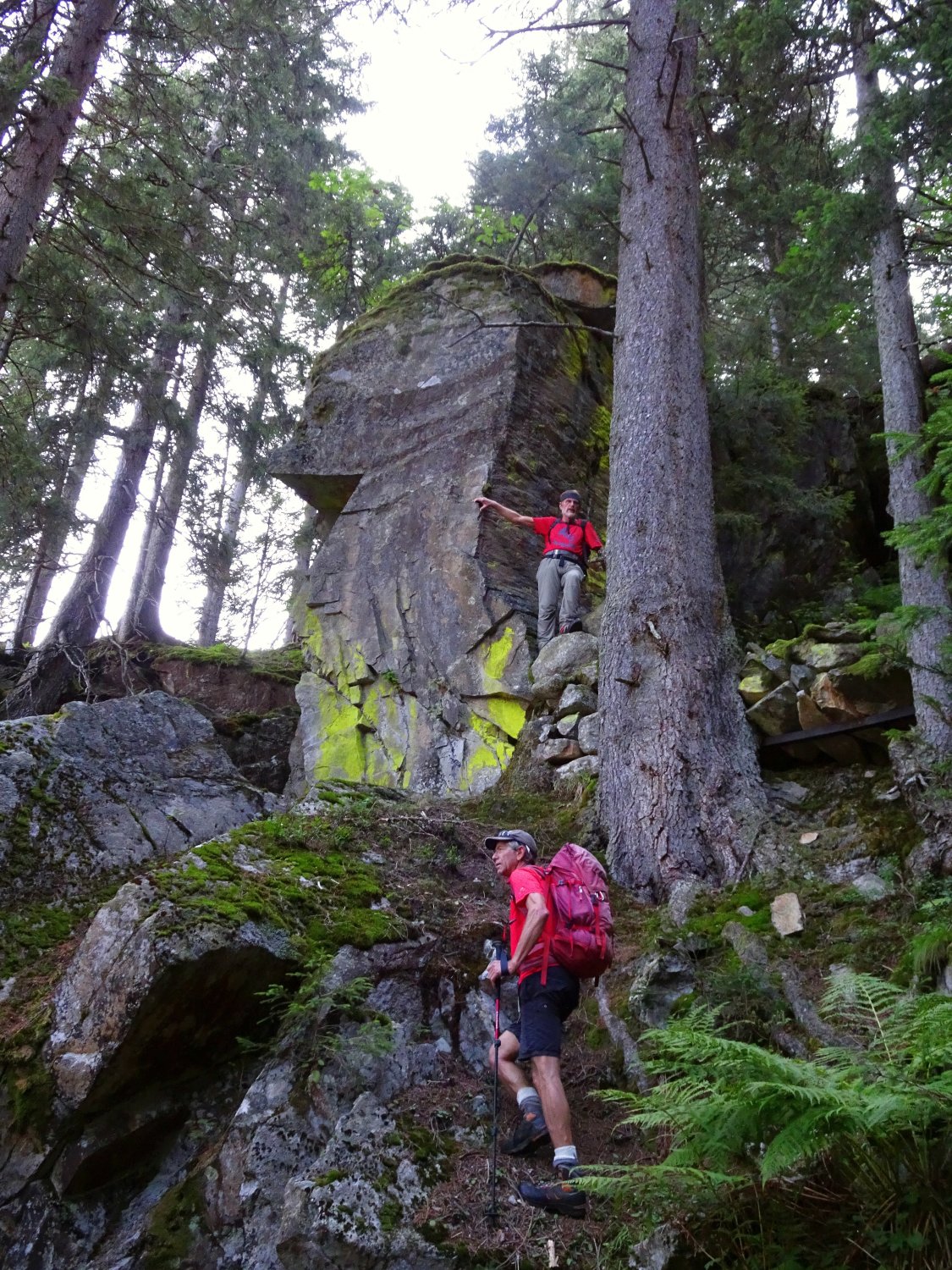 Zwischen Oberem und Unterem Vallülasee schön angelegter Höhenweg, der auf unseren Karten allerdings nicht vorhanden ist. Lange, aber landschaftlich lohnende Route. Der auf den Karten noch eingezeichnete direkte Weg entlang des Unteren Vallülabachs hingegen ist kaum mehr zu finden und verfällt offensichtlich.