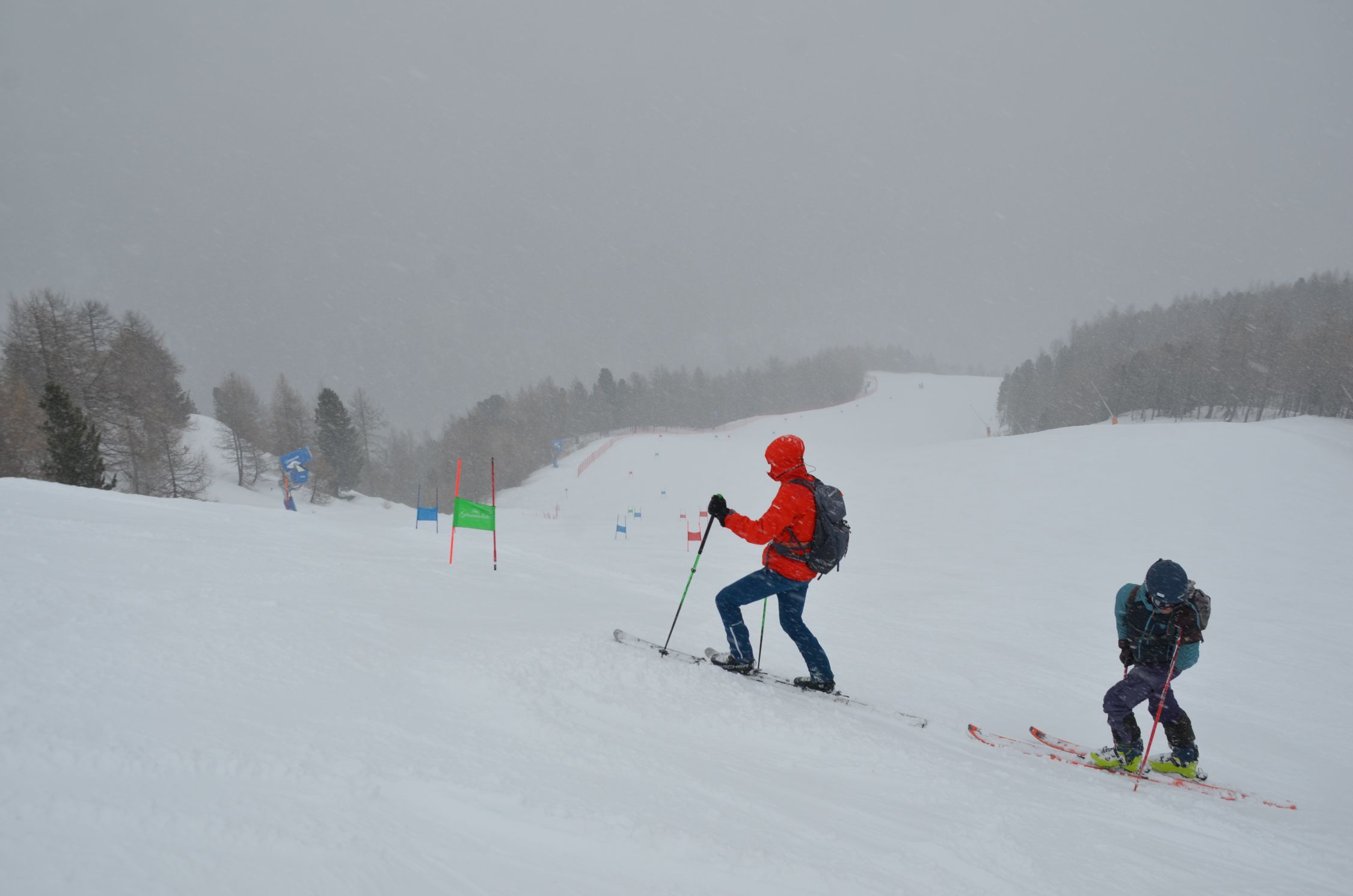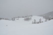 Diffuses Licht, leichter Schneefall und somit der Schnee auf der Piste griffig.