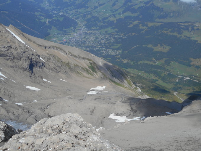 Der Wanderweg vom Sanetschsee nach Gsteig ist infolge eines grossen Felsturzes gesperrt. Gut erkennbar der Ausbruch am Spitzhorn. Man kann mit der Bahn nach Gsteig runter fahren. Siehe Foto.