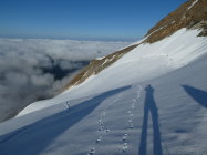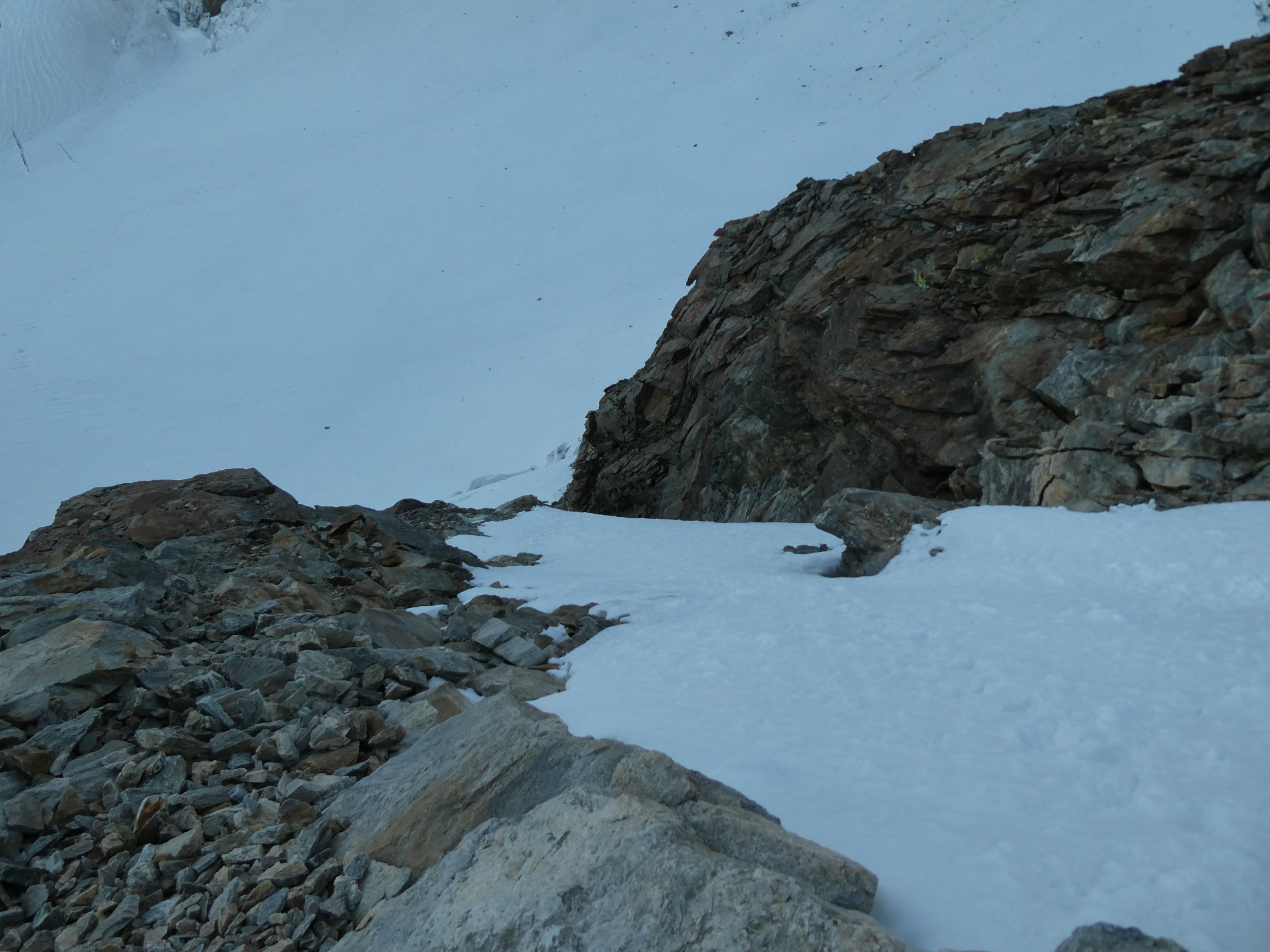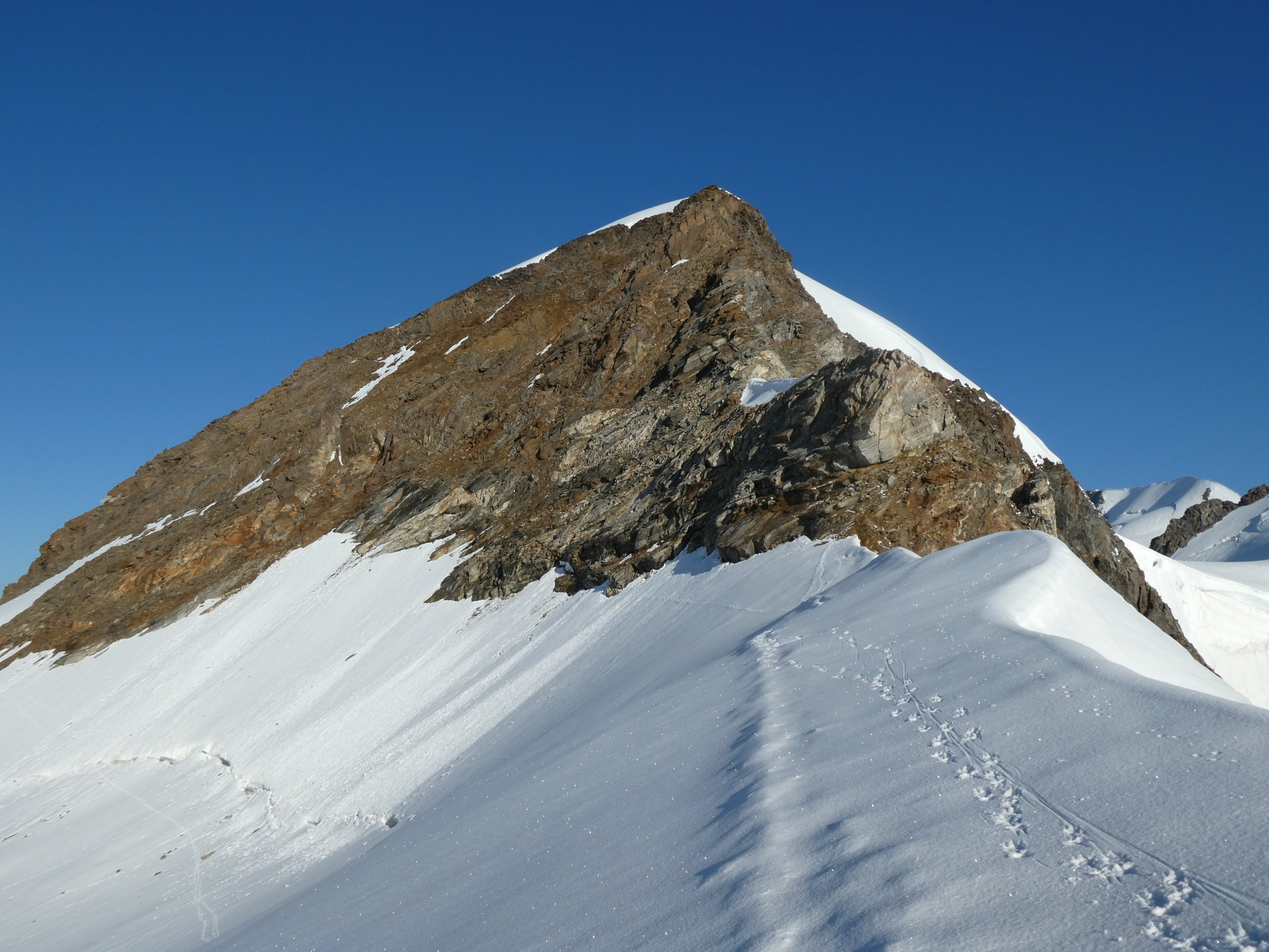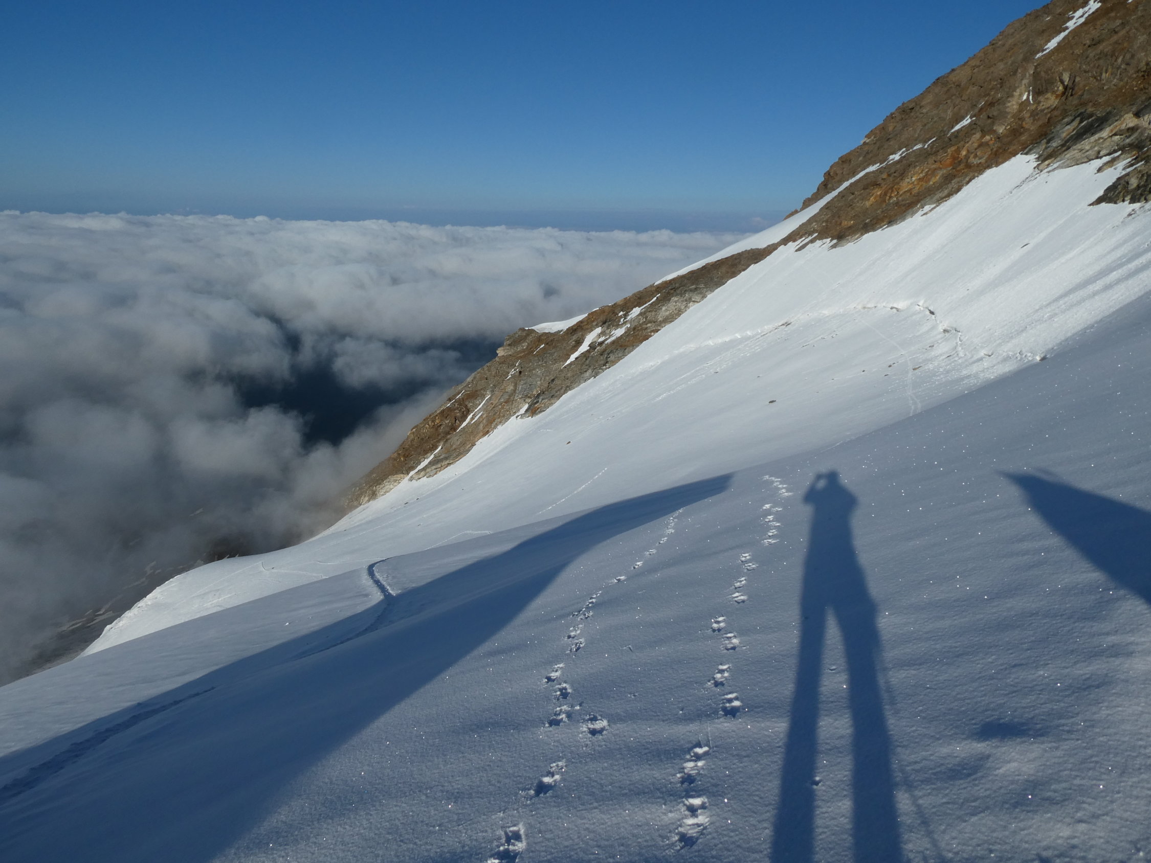 Gute Verhältnisse im Couloir das auf SSW Grat führt, Grat war trocken