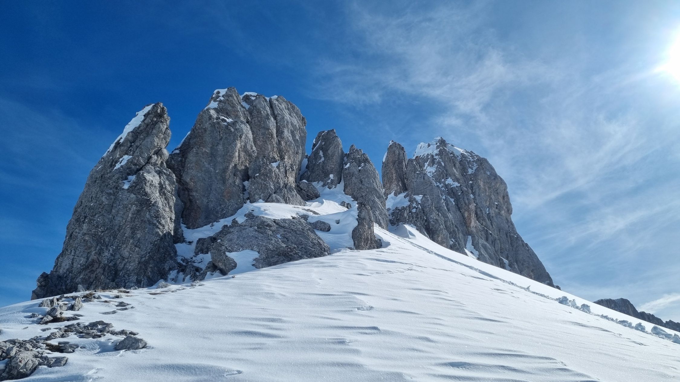 Landschaftlich reizvoller Aufstieg, viel einsamer als der Normalaufstieg. Und bei gutem Timing ist die Abfahrt ein wahrer Genuss bei den aktuellen Sulzverhältnissen