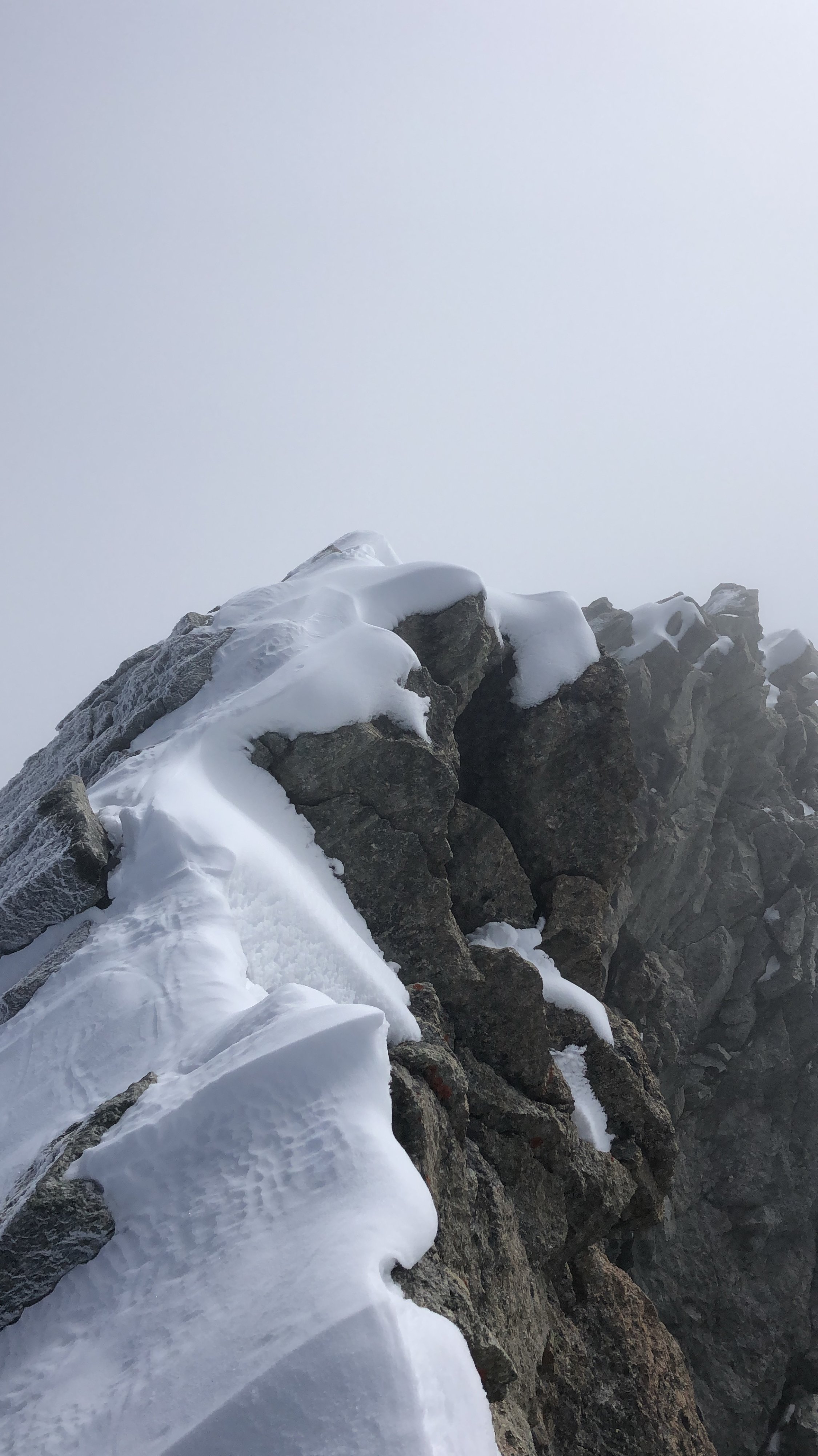Durch Nebel und Wind waren die Felsen am Grat und nordseitig mit Raureif und Wassereis überzogen->Steigeisen. Südseitig (Zustieg zum Grat/Südwand) trockener Fels. Abstieg durch den Wind und Neuschnee von VG etwas Triebschnee auf den Felsen. Ein bisschen Sonne und Wärme und dann herrschen wieder „ güäti Bedingigä“
