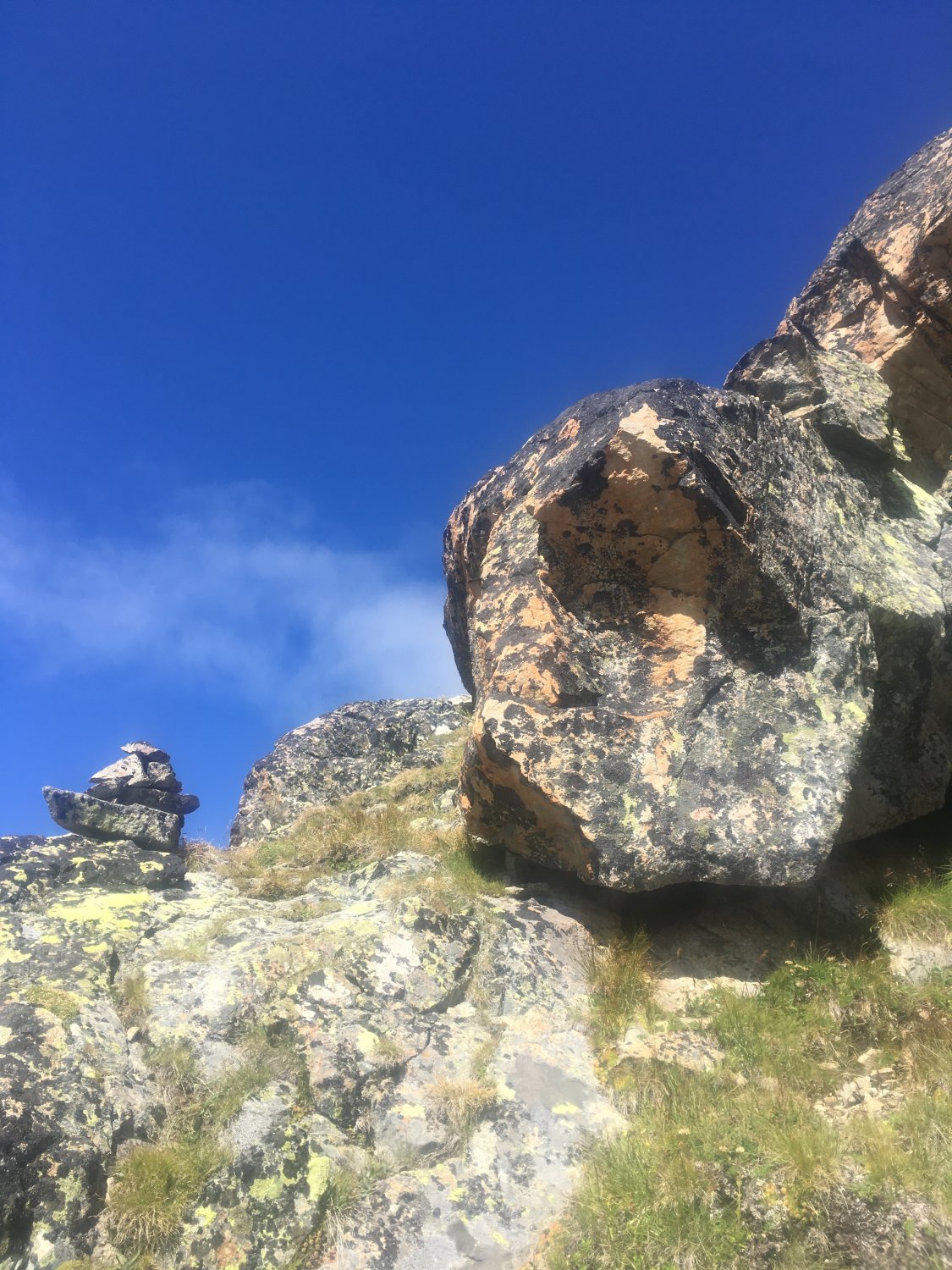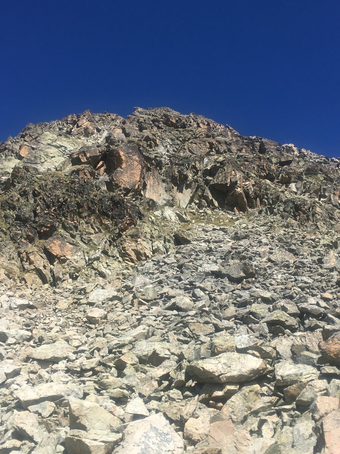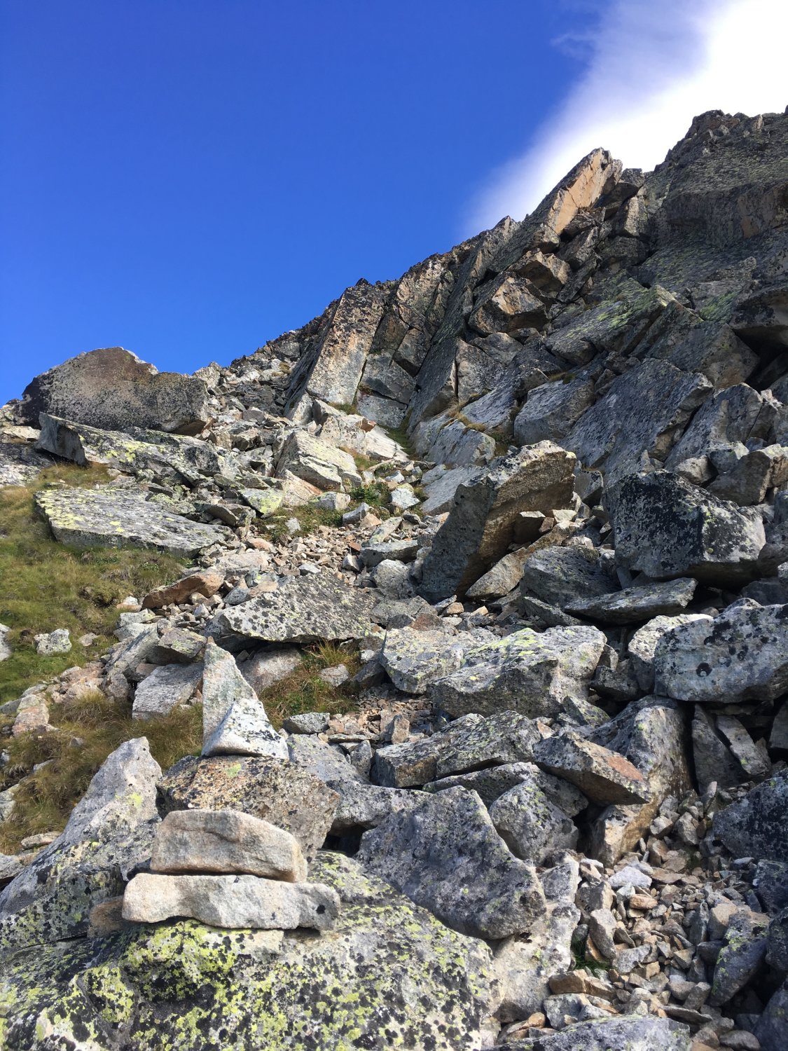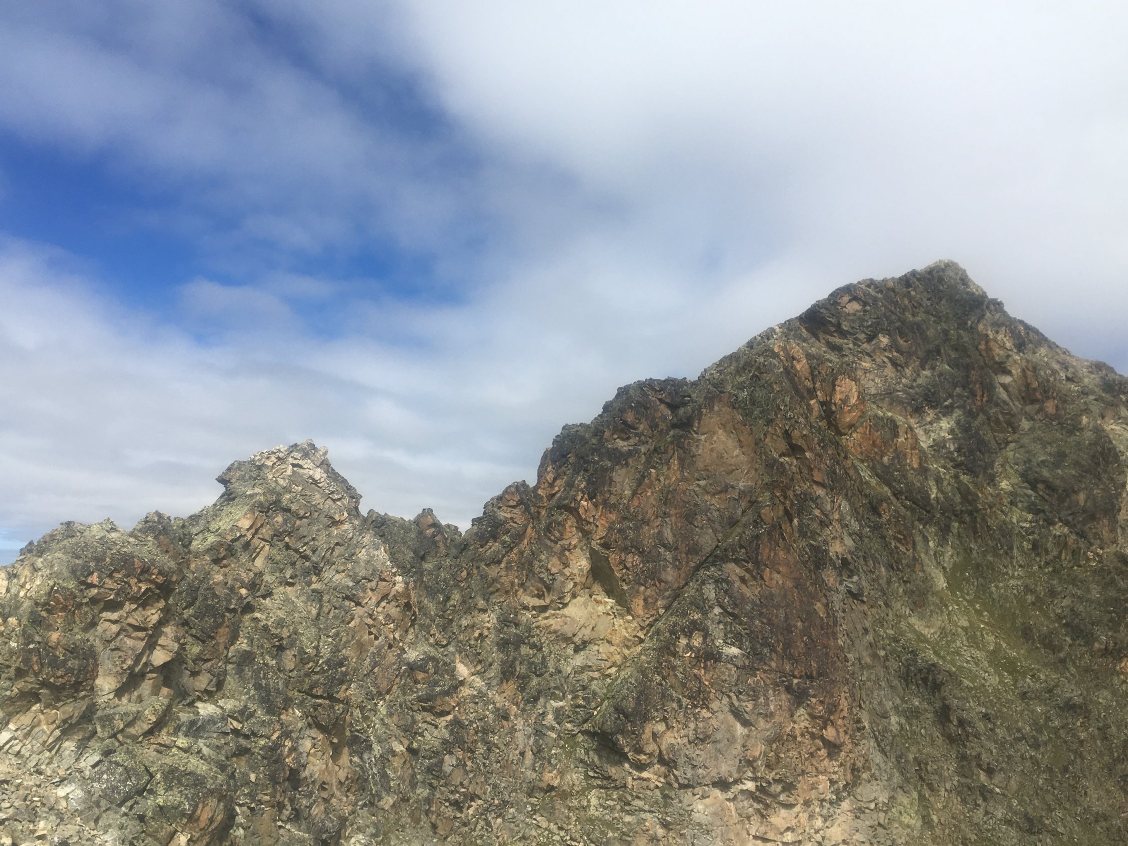 Start um 10 Uhr Fuorcla Surlej, 4 Grad, windstill. Bis P. 3006 wunderschöner Aufstieg über überraschend solidem Granit. Nach P. 3006 bin ich noch bis zum ersten Turm geklettert (II). Nachher hat mich der Mut verlassen, war mir zu ausgesetzt und nach meiner Meinung nur mit Seilsicherung vernünftig zu begehen. Meine Einstufung T6 oder WS plus. Im SAC Führer P. Giuliani 2007 ist der Südgrat mit L bewertet. Vielleicht habe ich auch nicht die richtige Route gefunden oder hatte einen schlechten Tag erwischt.