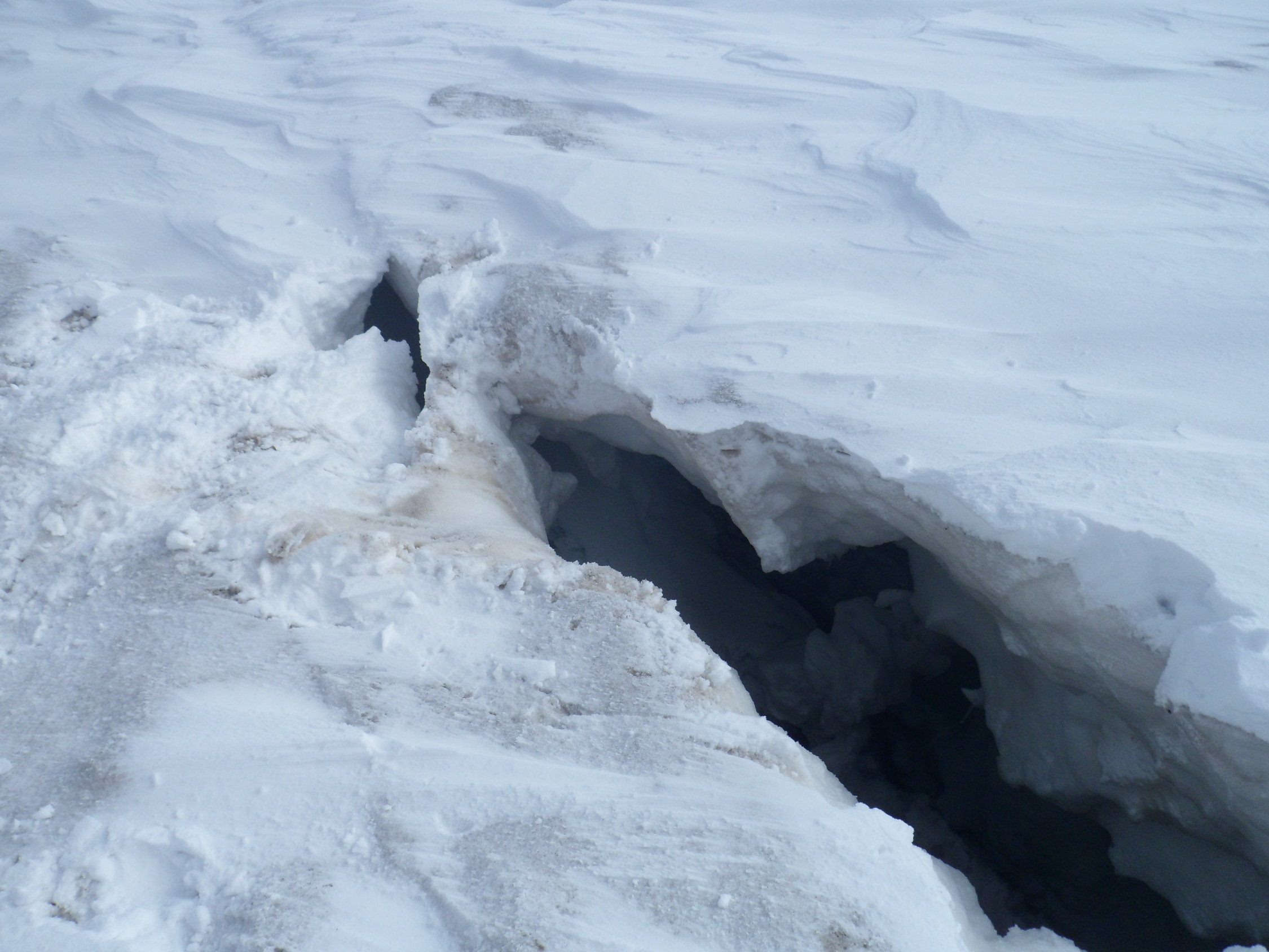 Wir waren nur zu zweit. Das Spaltenrisiko war einfach zu gross, siehe Bilder. Wir haben die Zeit nach dem Transfair in die Brancatahütte für einen Ausflug auf den Hausgipfel der Brancata-Hütte genutzt. Wegen den Neuschnees kam eine Überschreitung über den Palon de la mare sowieso nicht in Frage.
