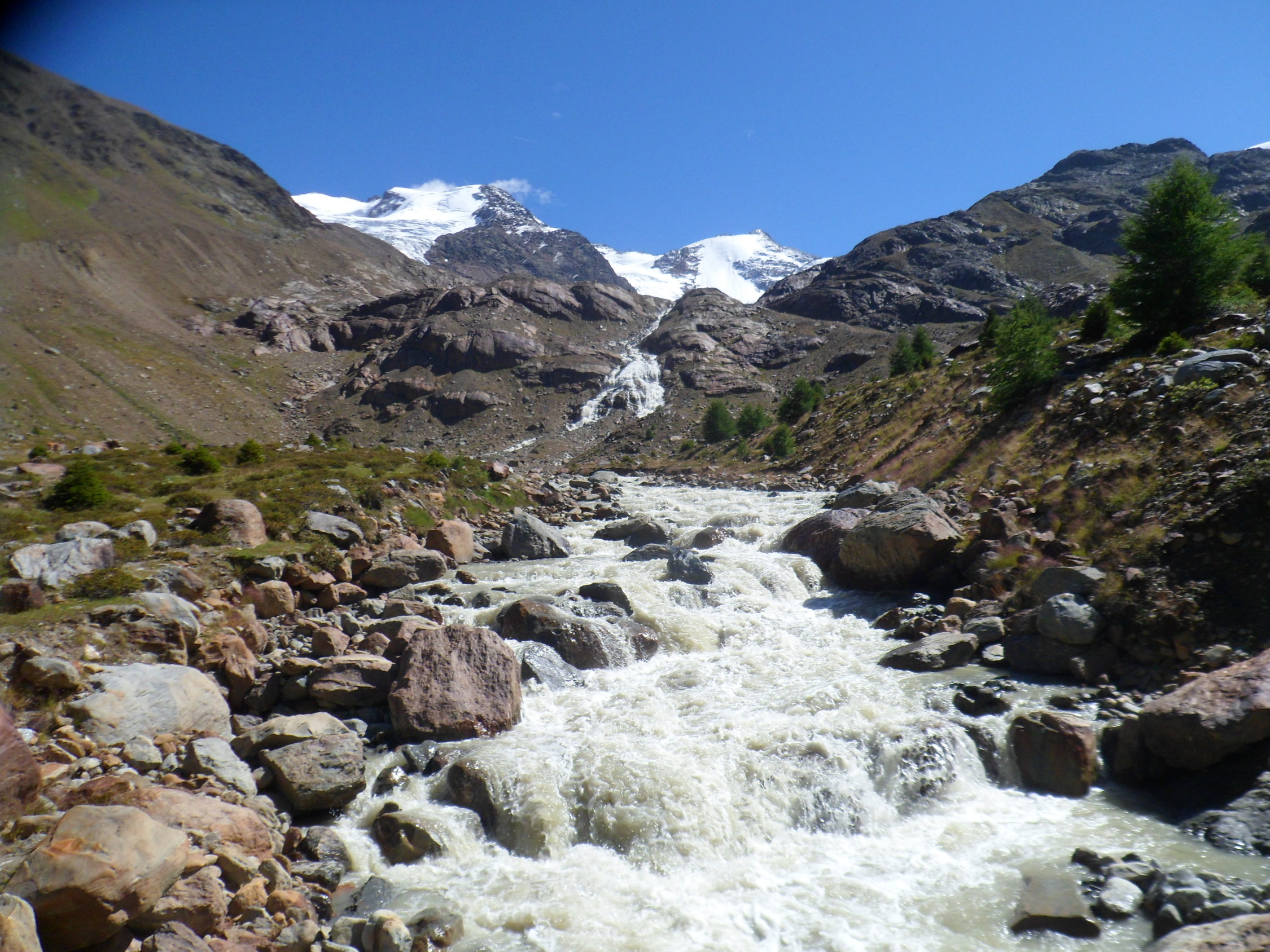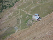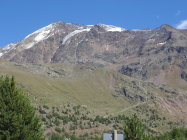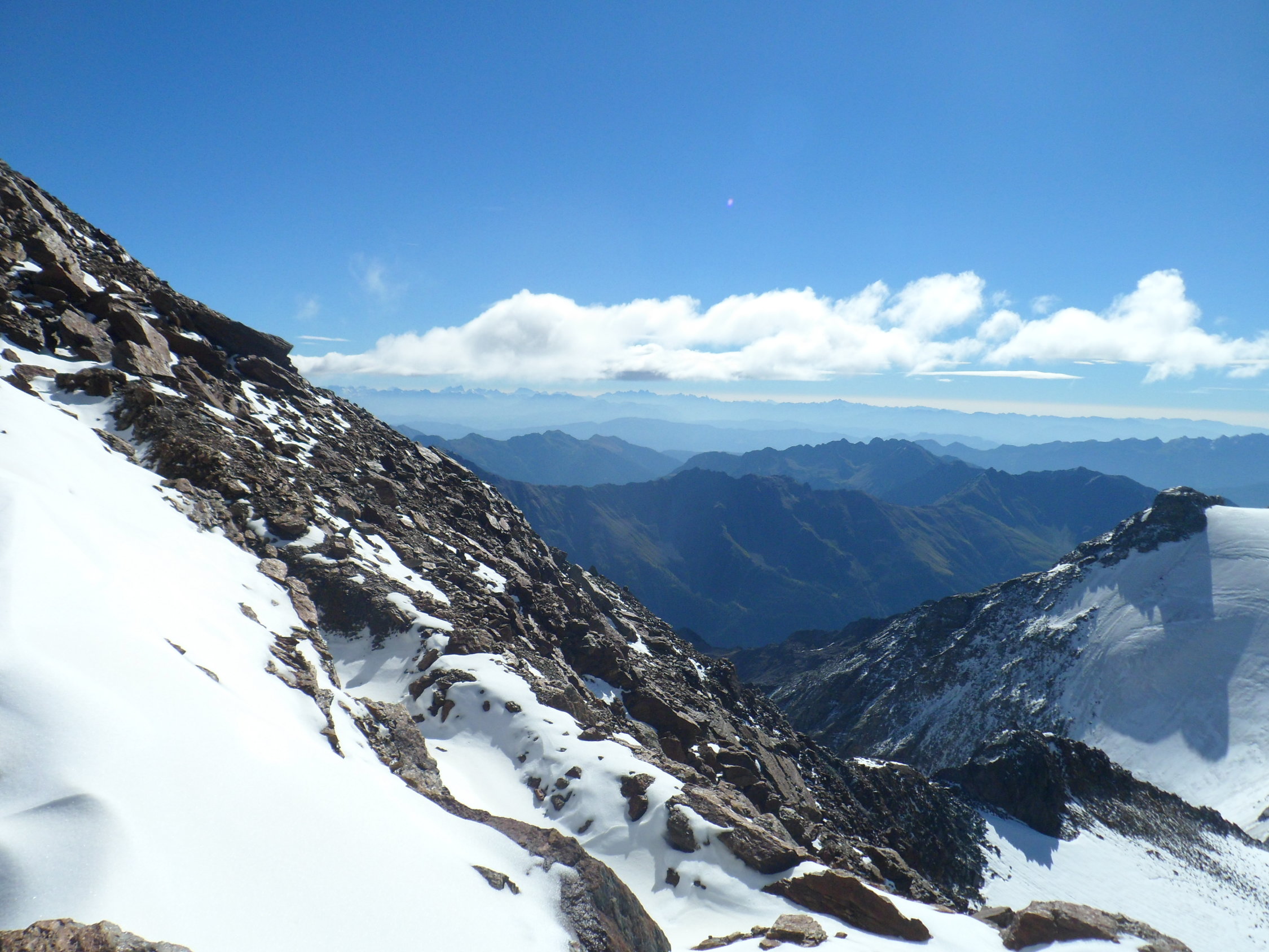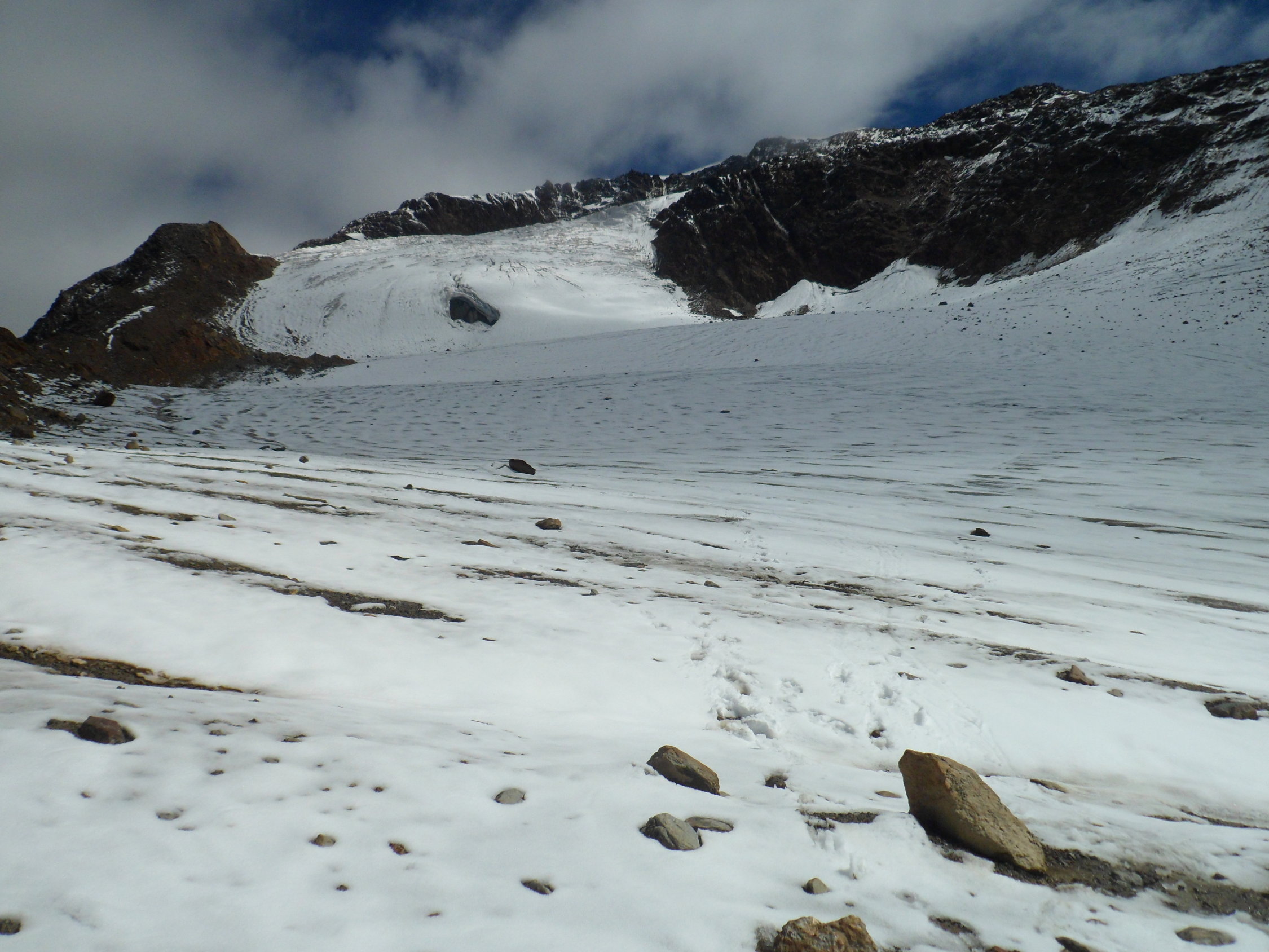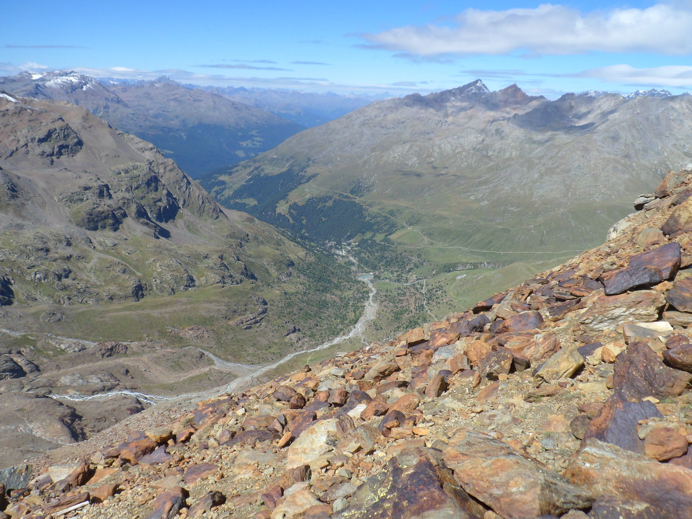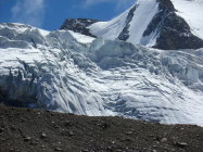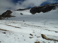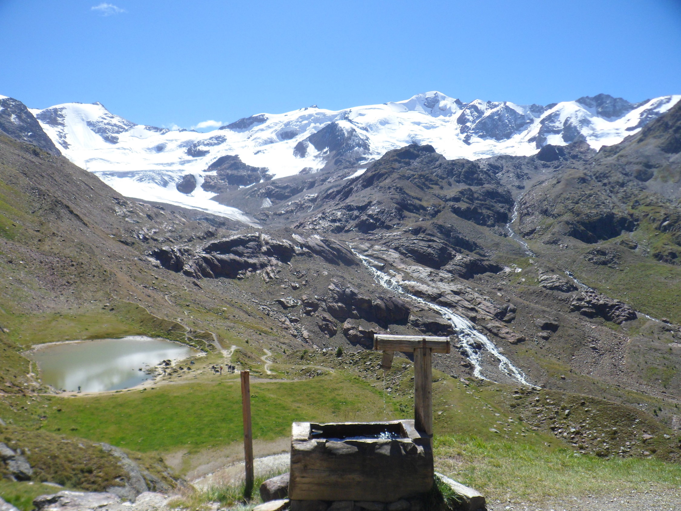 von der Branca Hütte Von der Branca-Hütte den Wanderweg alles auf den Moränen. Bei ca 3125 auf den Gletscher zuerst eher links dann einen weiten Bogen nach Süden. Schiesslich den Südgrat zum vereisten Gipfel.