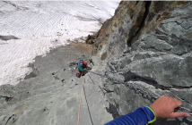 Wir haben unterhalb der Aostahütte biwakiert und sind dann um 5.00 Uhr gestartet was etwas zu spät war. Der Zustieg zum Gletscher ist über die Moräne auch Nachts einfach zu finden und gut markiert. Der Gletscher ist beim Abbruch aper und die Spalten gut zu sehen. Wir sind dann irrtümlicherweise bereits zu forderst beim Tiefmattenjoch eingestiegen was eine sehr bröselige und steile Angelegenheit war. Diese Variante ist nicht zu empfehlen welche auch selten bis gar nie begangen wird. Der Grat nach dem Tiefenmattjoch bis zu den Ketten geht recht gut wenn man teilweise sehr luftig im dritten Grat abklettern muss. Der Aufstieg zum Gipfel über den Westgrat war problemlos und das Firn in gutem Zustand mit nur ganz wenig Blankeis. Den Abstieg haben wir dann wie üblich über die Ketten nach dem Westgrat gemacht welche sehr hilfreich sind. Der Gletscher ist Spaltenreich und wir waren wie erwähnt zwar sehr schnell aber weil wir nicht früh gestartet sind immer noch sehr spät unterwegs. Landschaftlich ist's eine tolle Tour. Wir haben dann nochmals am See biwakiert und waren dann am Mittwoch wieder beim Auto.