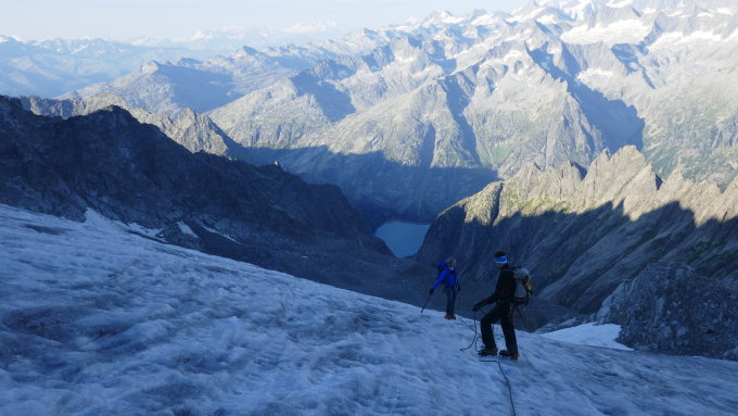 Deutlich mehr Seilschaften kamen von der Trifthütte und stiegen zur Gelmer ab.