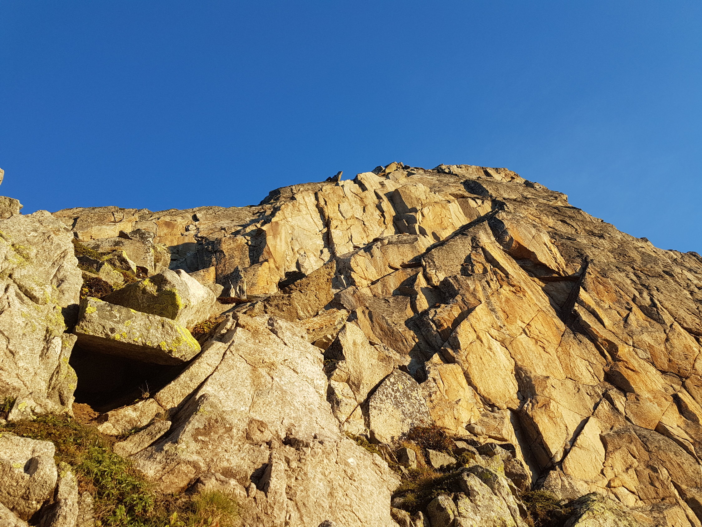 Tolle Tour in wilder und einsamer Umgebung. Routenfindung ist nicht immer ganz einfach und erfordert etwas Spürsinn. Ganze Tour schneefrei bis auf ein paar Zentimeter Schnee auf dem Chüebodengletscher, die aber nicht störten. Grat am Einstieg etwas feucht vom Regen am Vortag, Rest perfekt trocken dank Sonnenschein vom Morgen an. Auf dem Gipfel dann etwas Graupel, der aber nicht störte. Wetter aber klar besser als befürchtet.
