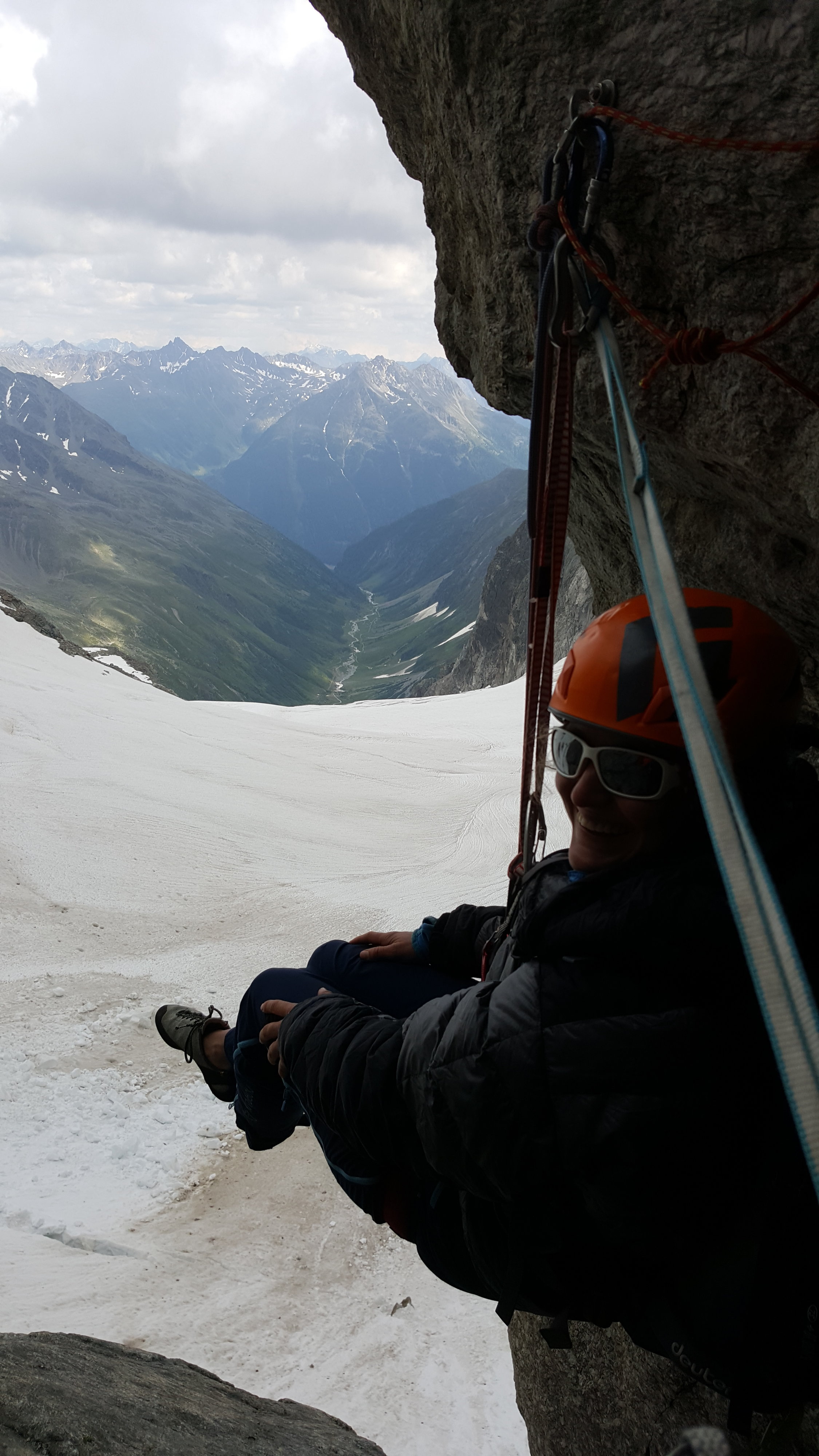 Da der klassische Zustieg zum Verstanklasattel und somit zum Verstanklahorn Ostgrat zunehmend heikler geworden ist und meist nur noch im Frühsommer begangen werden kann, haben wir im Juli eine recht schöne Zustiegsvariante auf der Südseite eingerichtet. Die 4 Seillängen im 4ten Grad sind allesamt im besten Fels und bieten einen sicheren Zustieg zum Grat sobald der Schnee aus den oberen Platten abgerutscht ist. Ein detailiertes Topo findet sich im Routenbeschrieb.