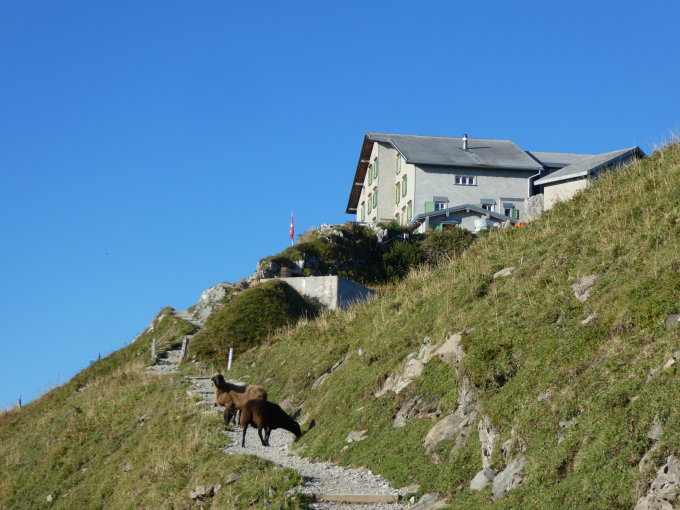 Start zur heutigen Säntistour um 7.40 auf der Ebenalp bei Sonne und kaum Bewölkung.