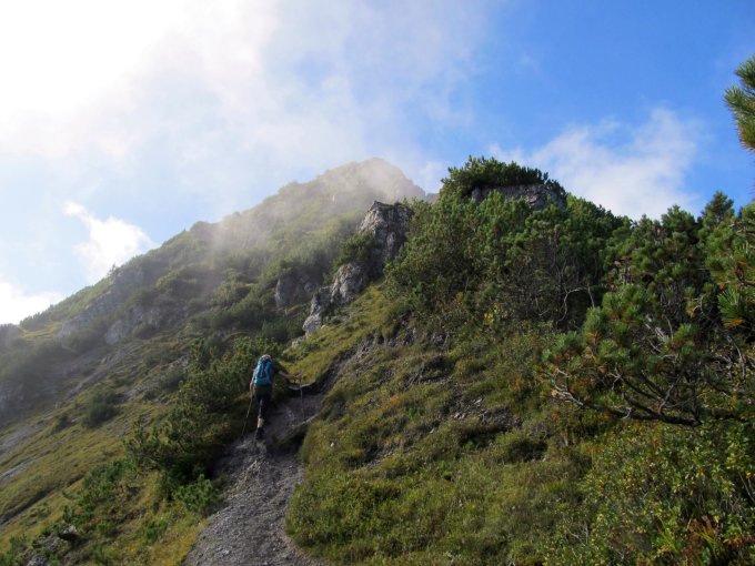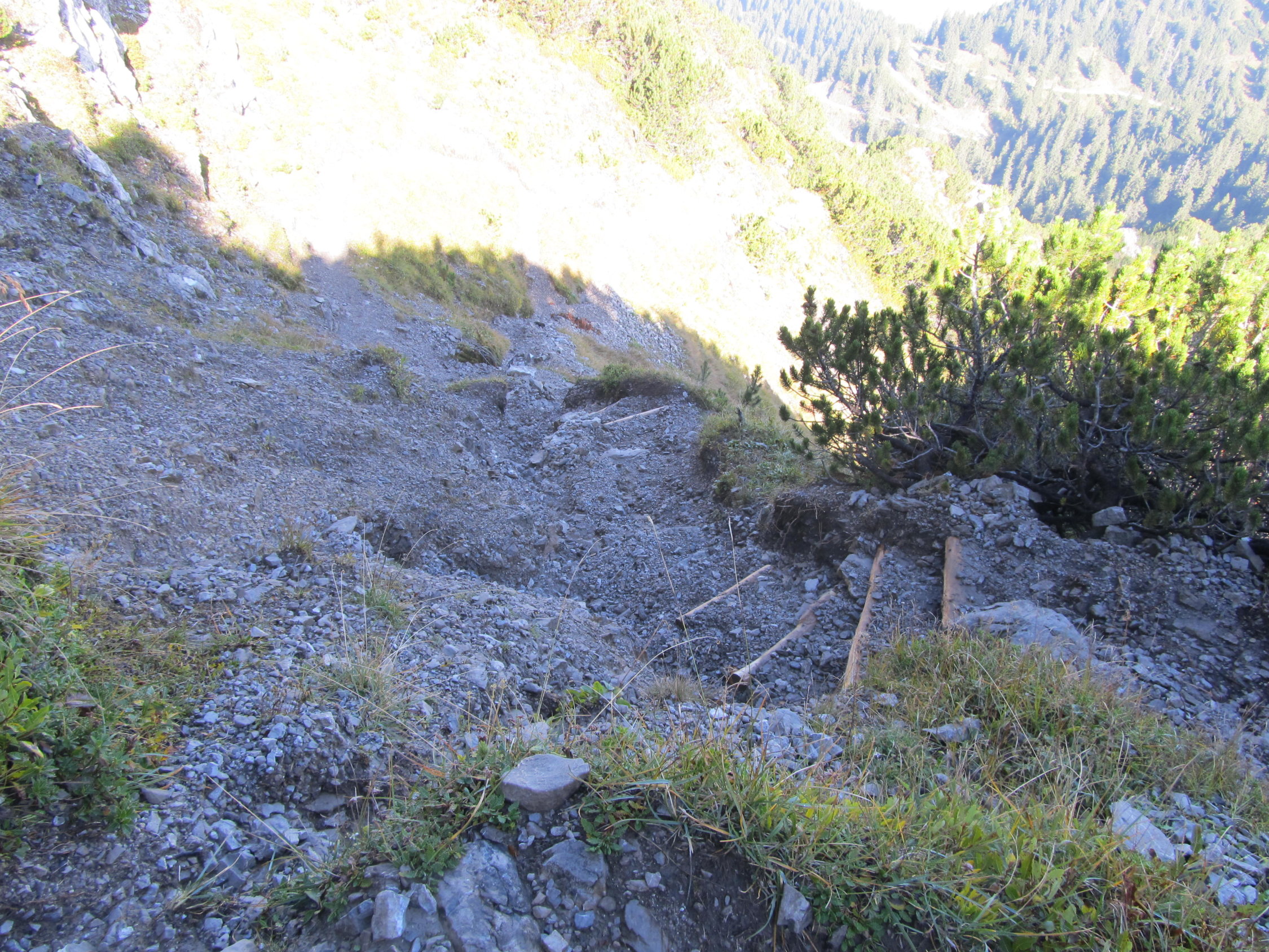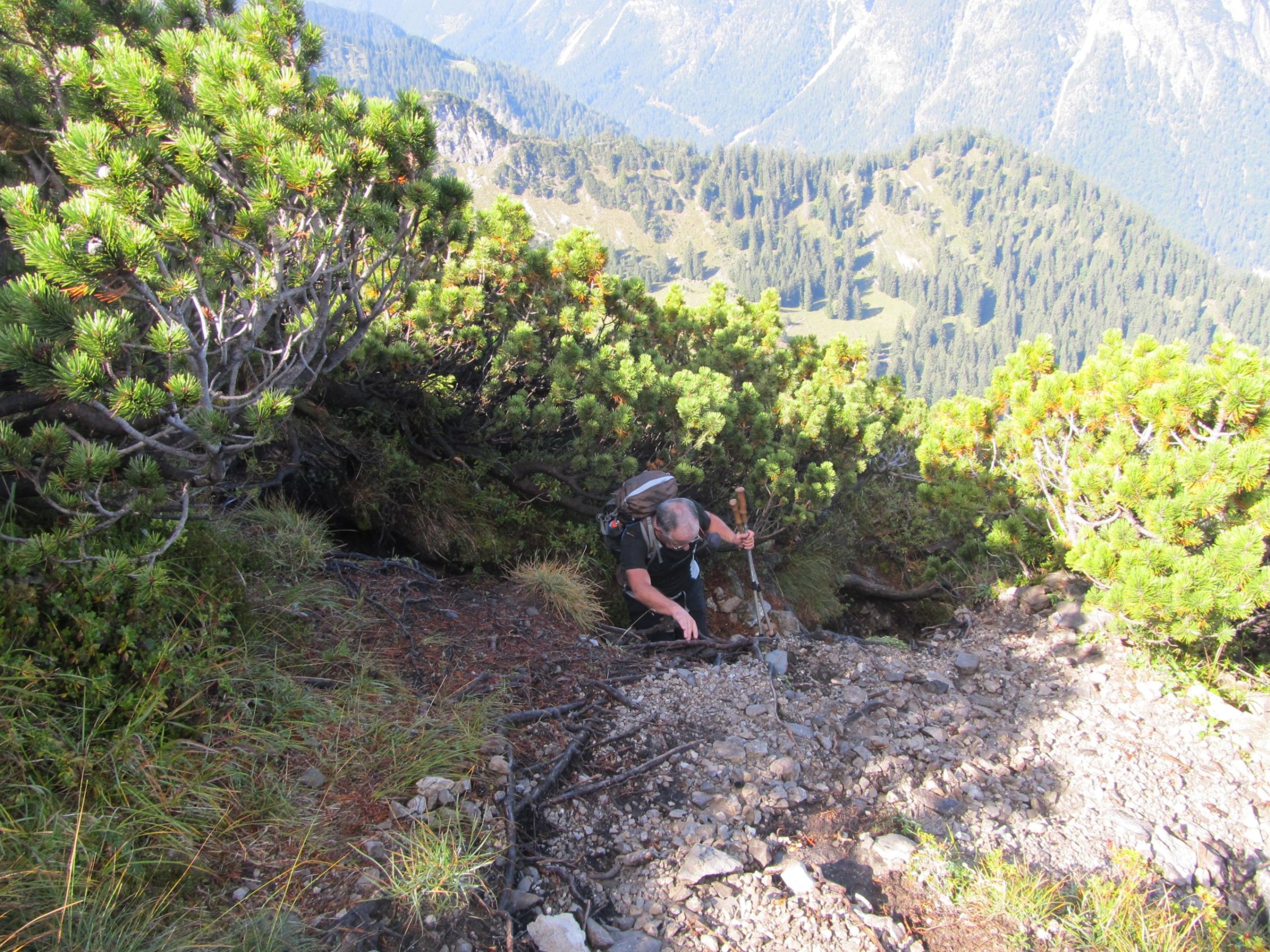 Die Bergwege waren in den Schattenlagen nass und die Felschrofen und die vielen Latschenwurzeln dementsprechend rutschig.