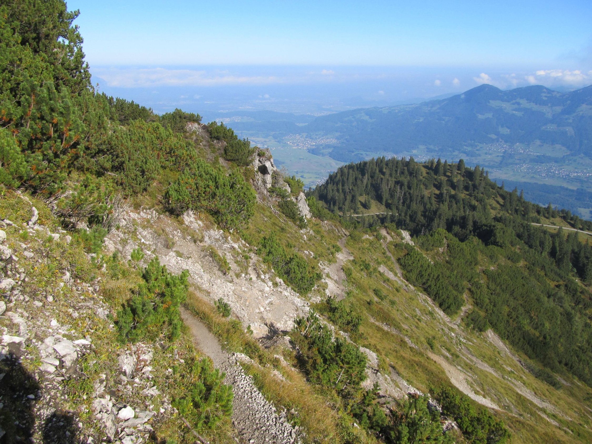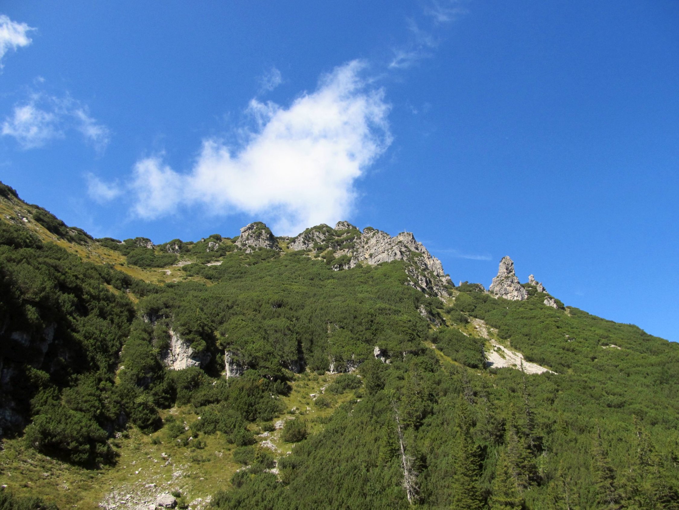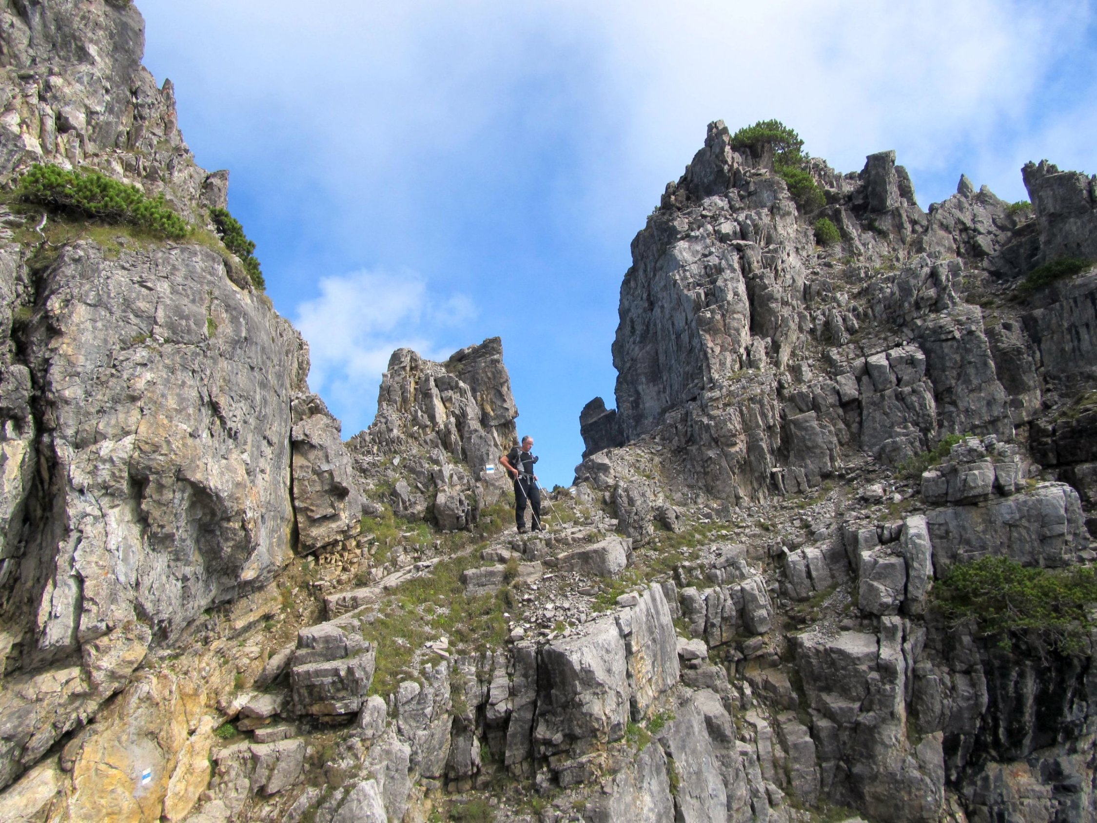 Die Bergwege waren in den Schattenlagen nass und die Felschrofen und die vielen Latschenwurzeln dementsprechend rutschig.