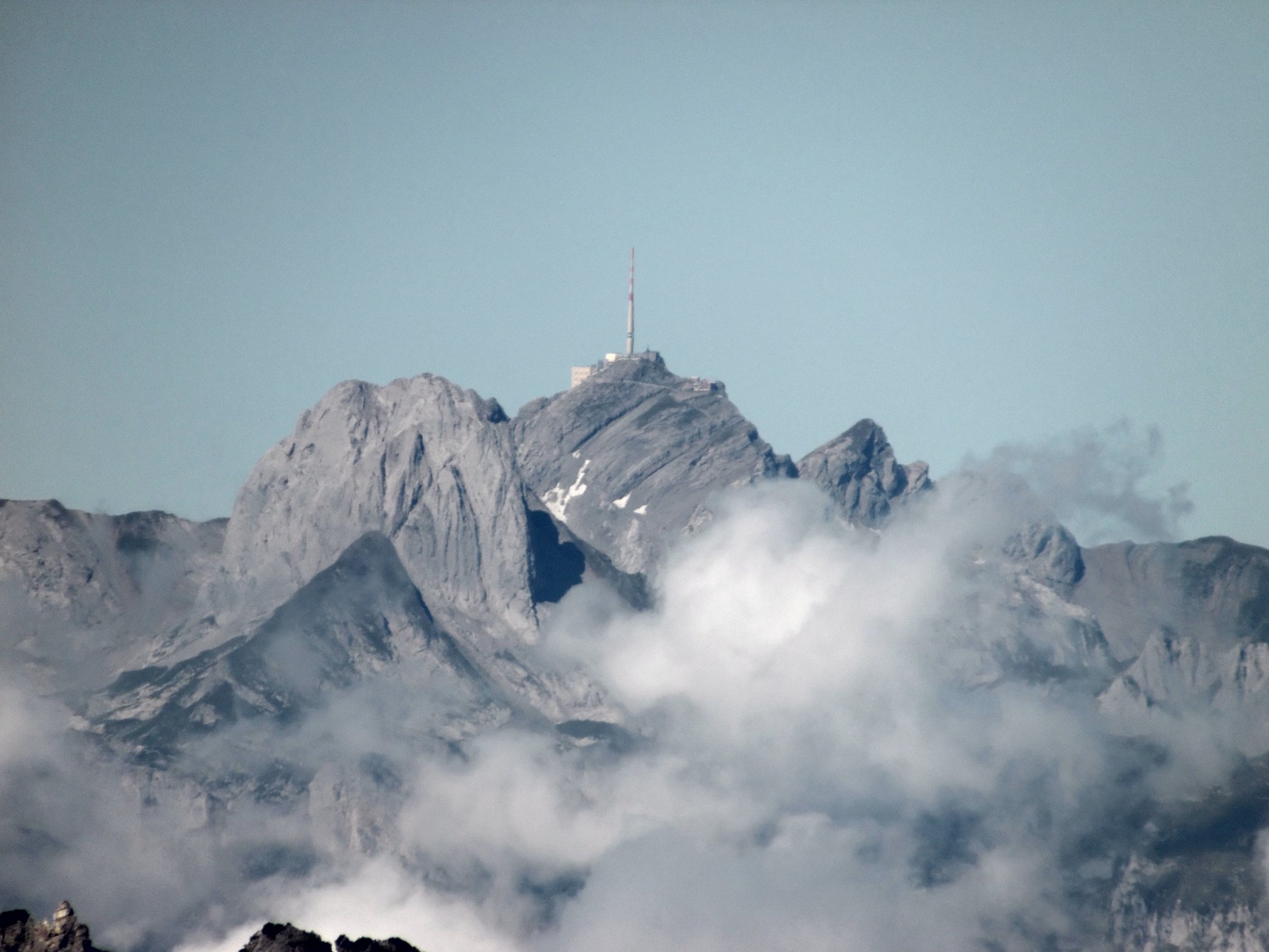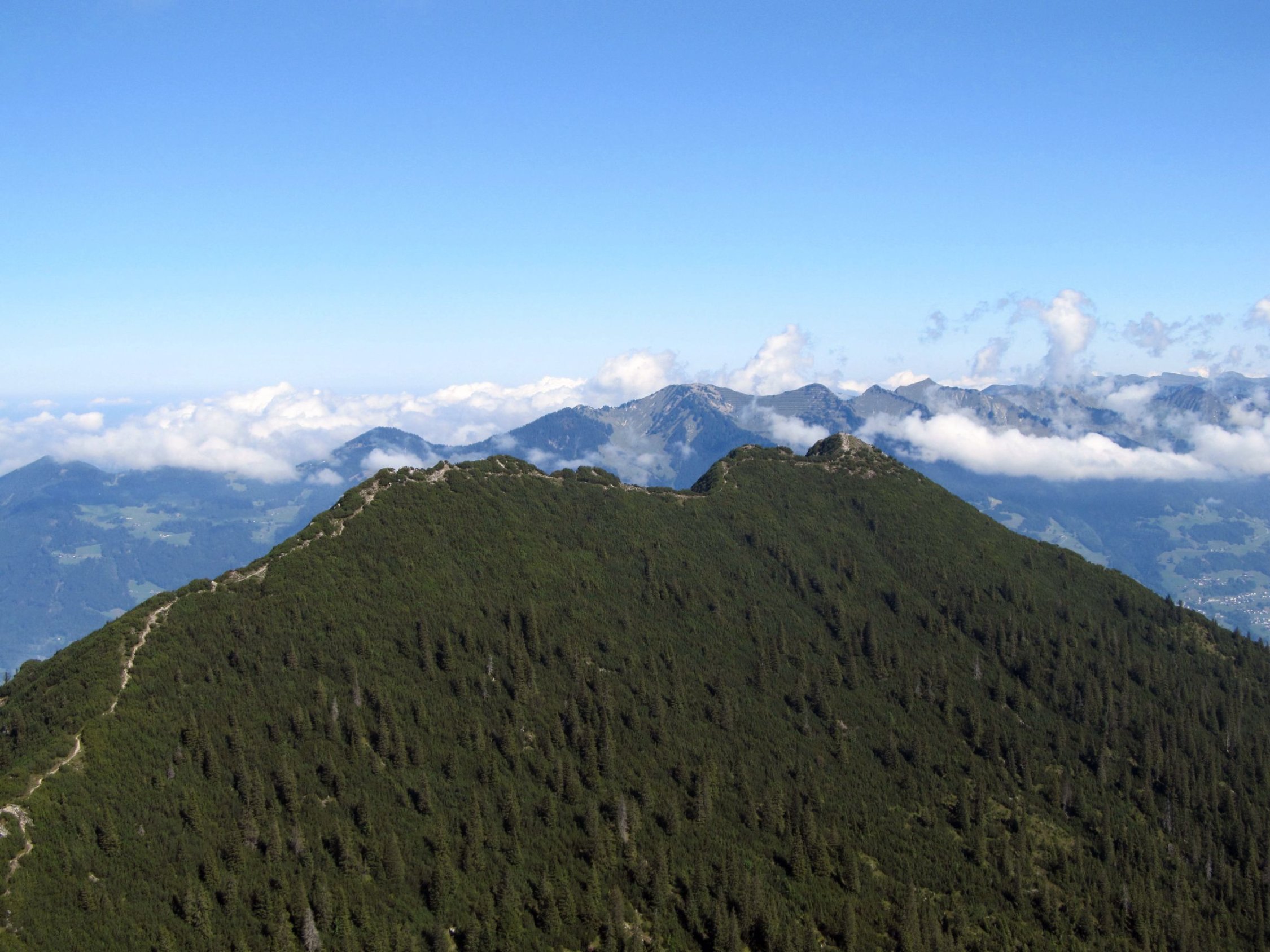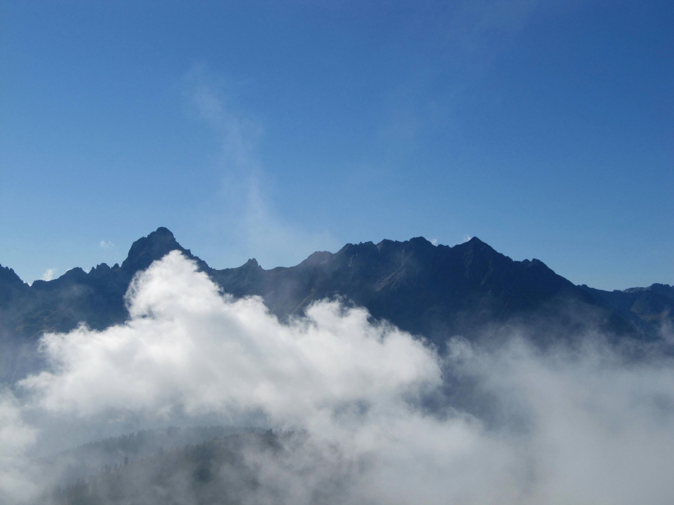 Die Fernsicht in das Verwall und Lechquellengebirge in der klaren Luft war optimal. Richtung Westen hielten sich in den Gipfelregionen Quellwolken.