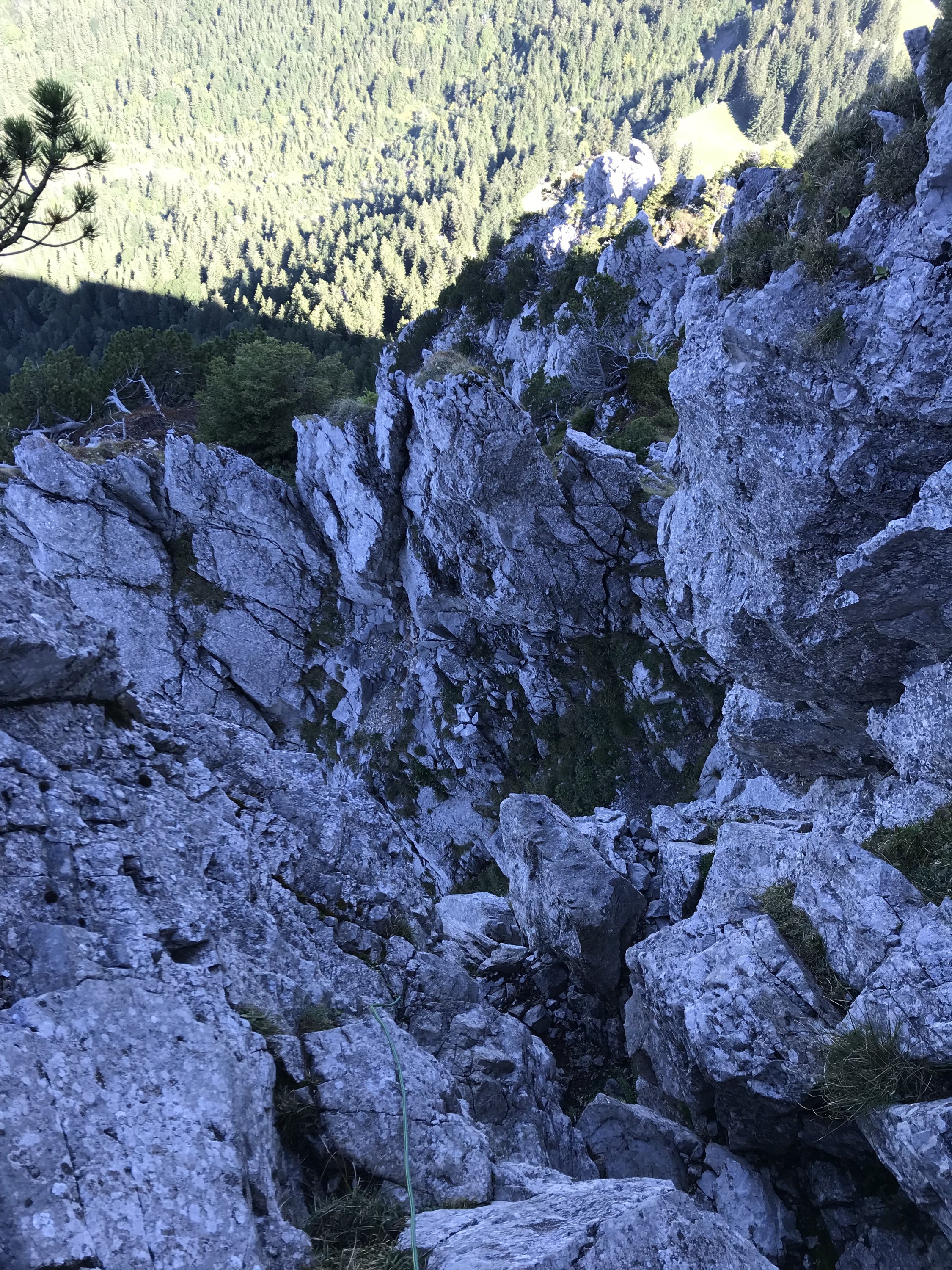 Beim Abstieg probierte ich den Weg durch das Couloir aus und war froh, dass ich mich mit meinem Seil sichern konnte. Eigentlich wollte ich nur wissen, wo der Einstieg zu diesem Couloir ist, wenn man vom Haggenspitz her kommt. Ich kenne jetzt die Einstiegsstelle, aber ich werde diese Route eher nicht mehr gehen, da sie zu ausgesetzt ist.