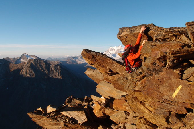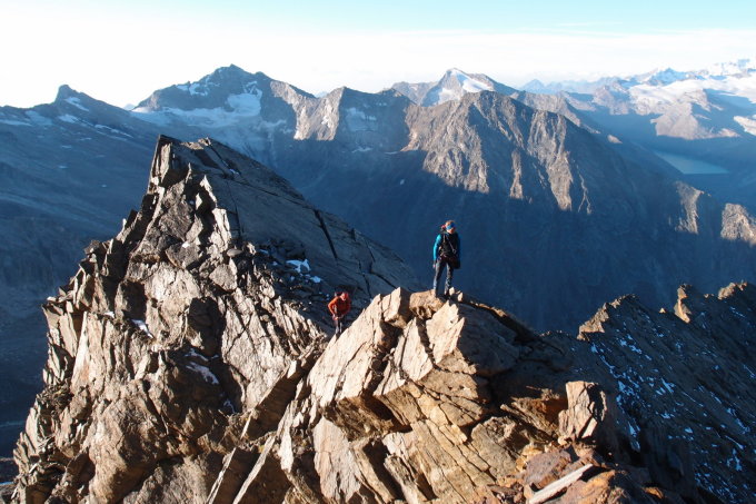 Schöne und gute Verhältnisse für die Überschreitung der Weissmies über ihre Felsgrate.