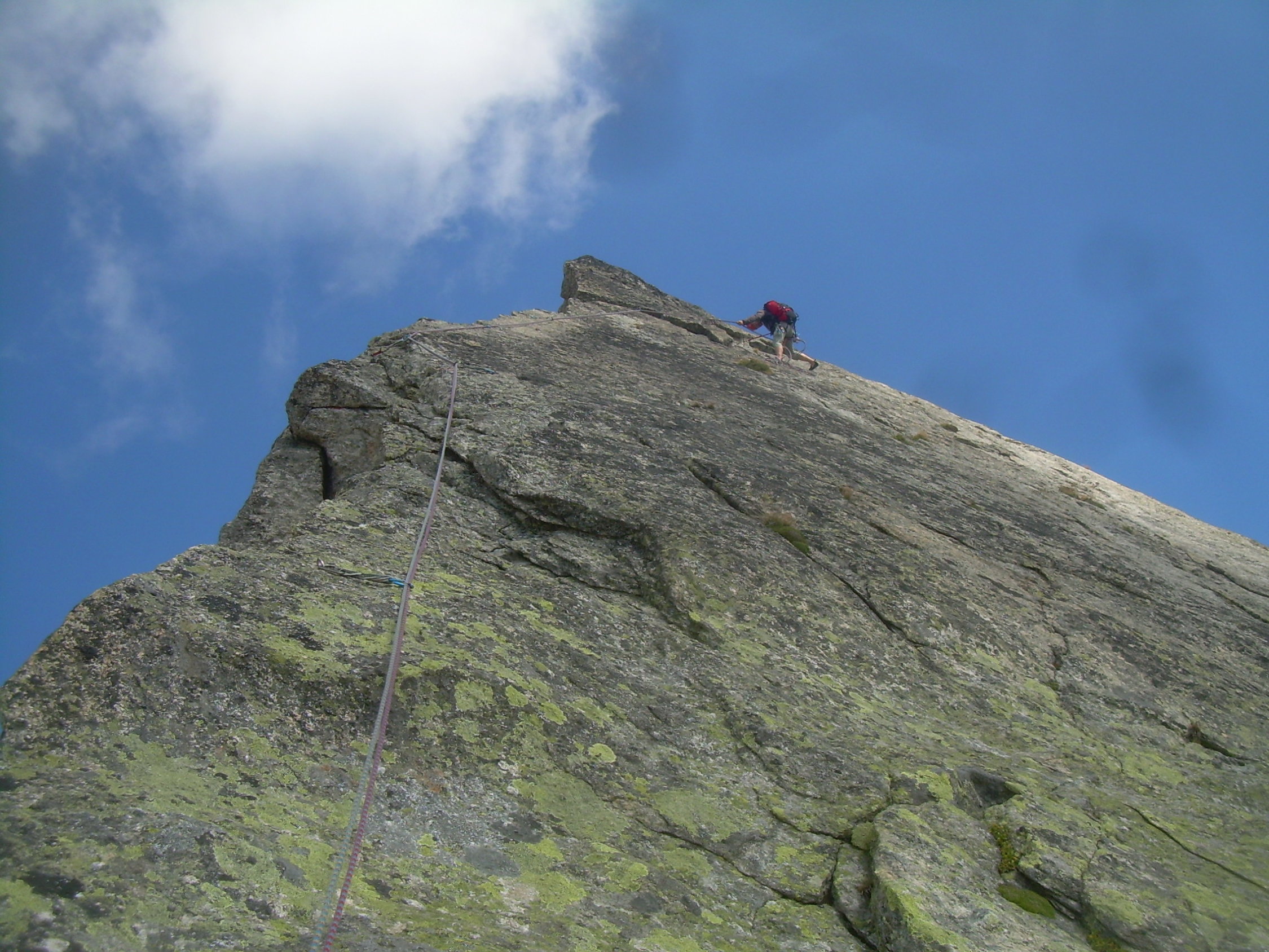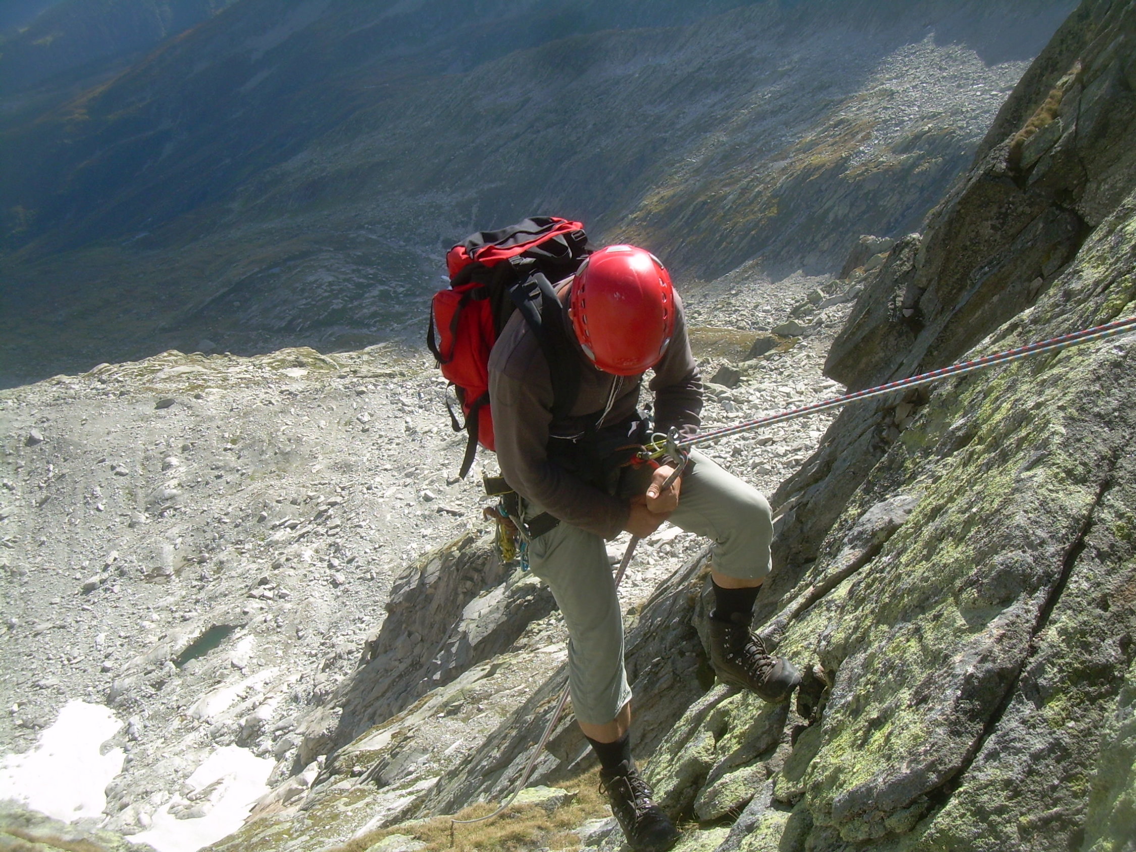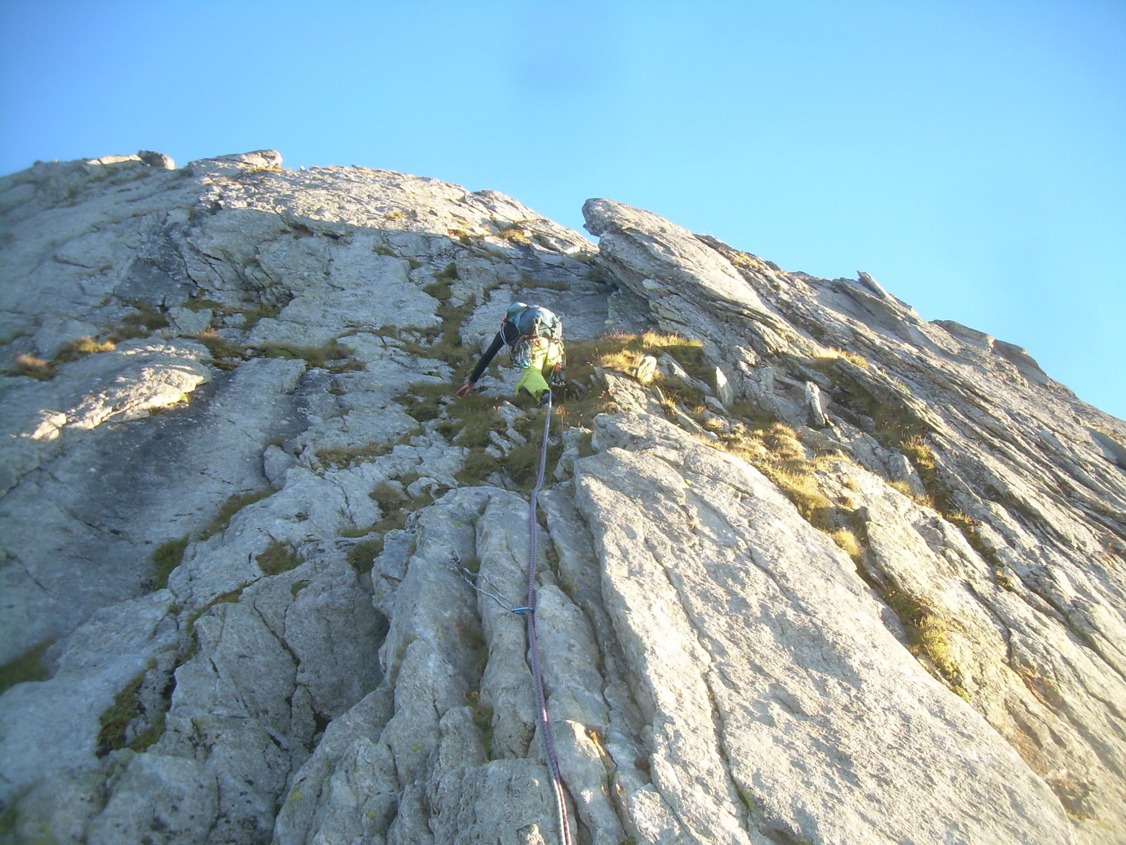 Ganztätig bestes Spätsommerwetter. Frühmorgens war´s im Aufstieg zur Scharte noch etwas feucht und klamm, ansonsten gesamte Route perfekt trocken. Mit uns war nur noch eine Zweierseilschaft unterwegs.