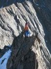Trockene Felsen bei der hübschen, ausgesetzten Gratkletterei.