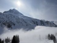 Schönes Spiel zwischen Nebel/Wolken, inklusive totalen white out Momenten, und frühlingshafter Sonne - welche insbesondere bei den aktuellen Temperaturen den Aufstieg recht schweiss treibend gemacht hat im unteren Teil.