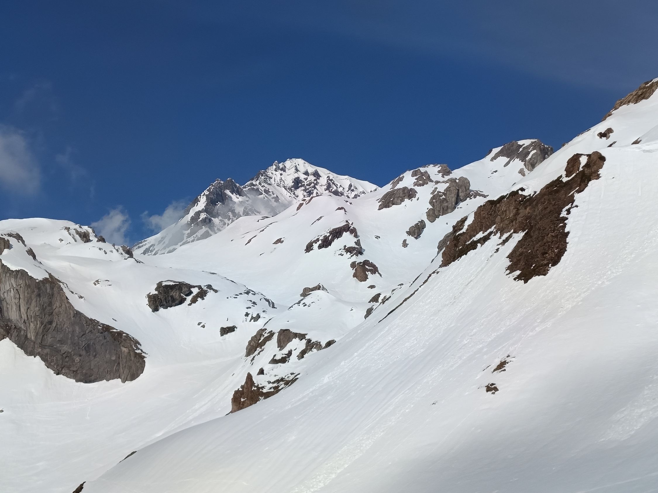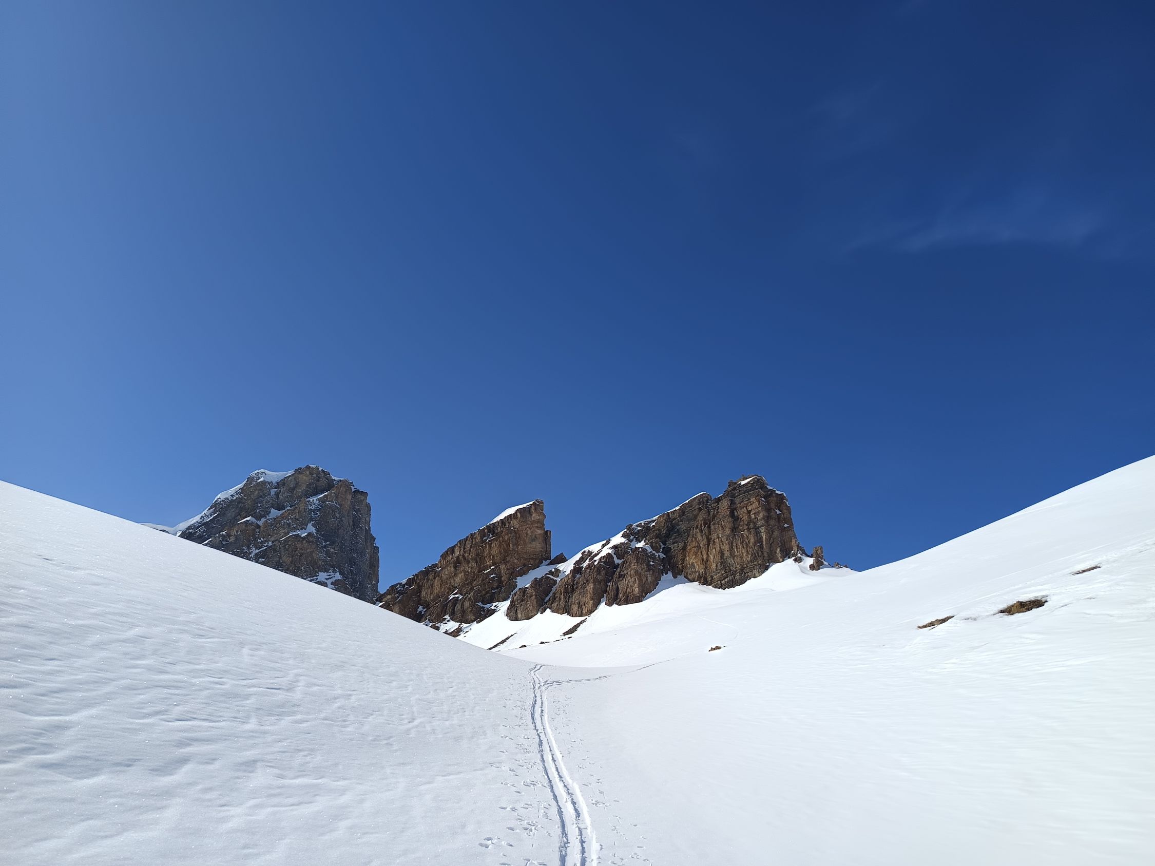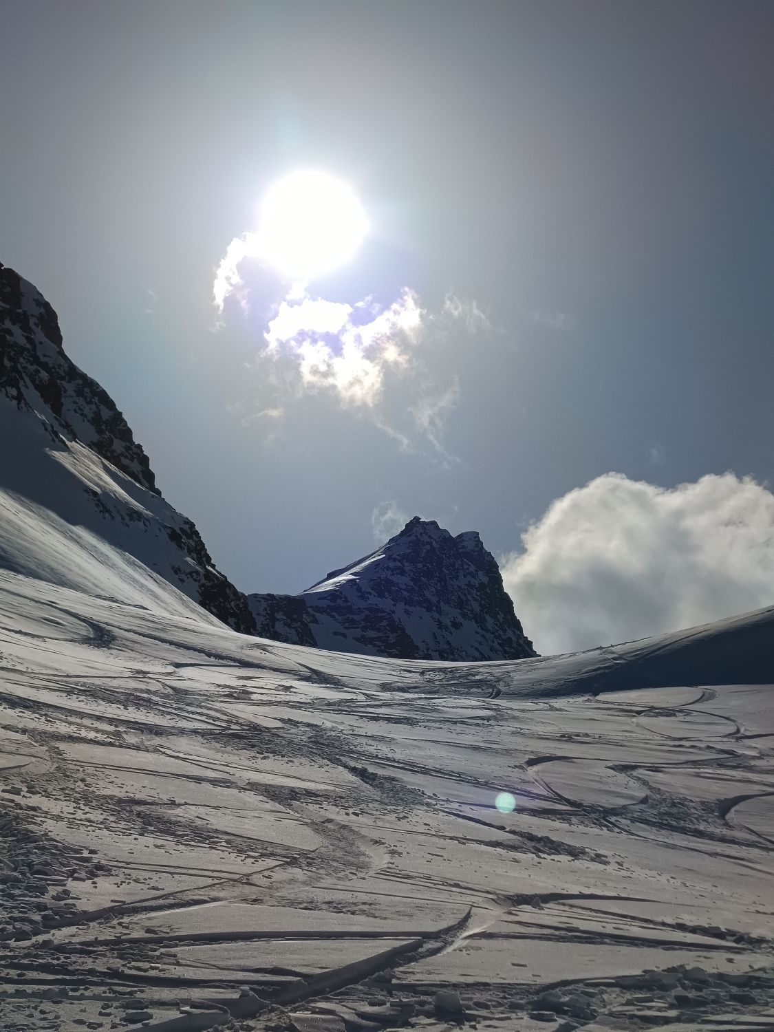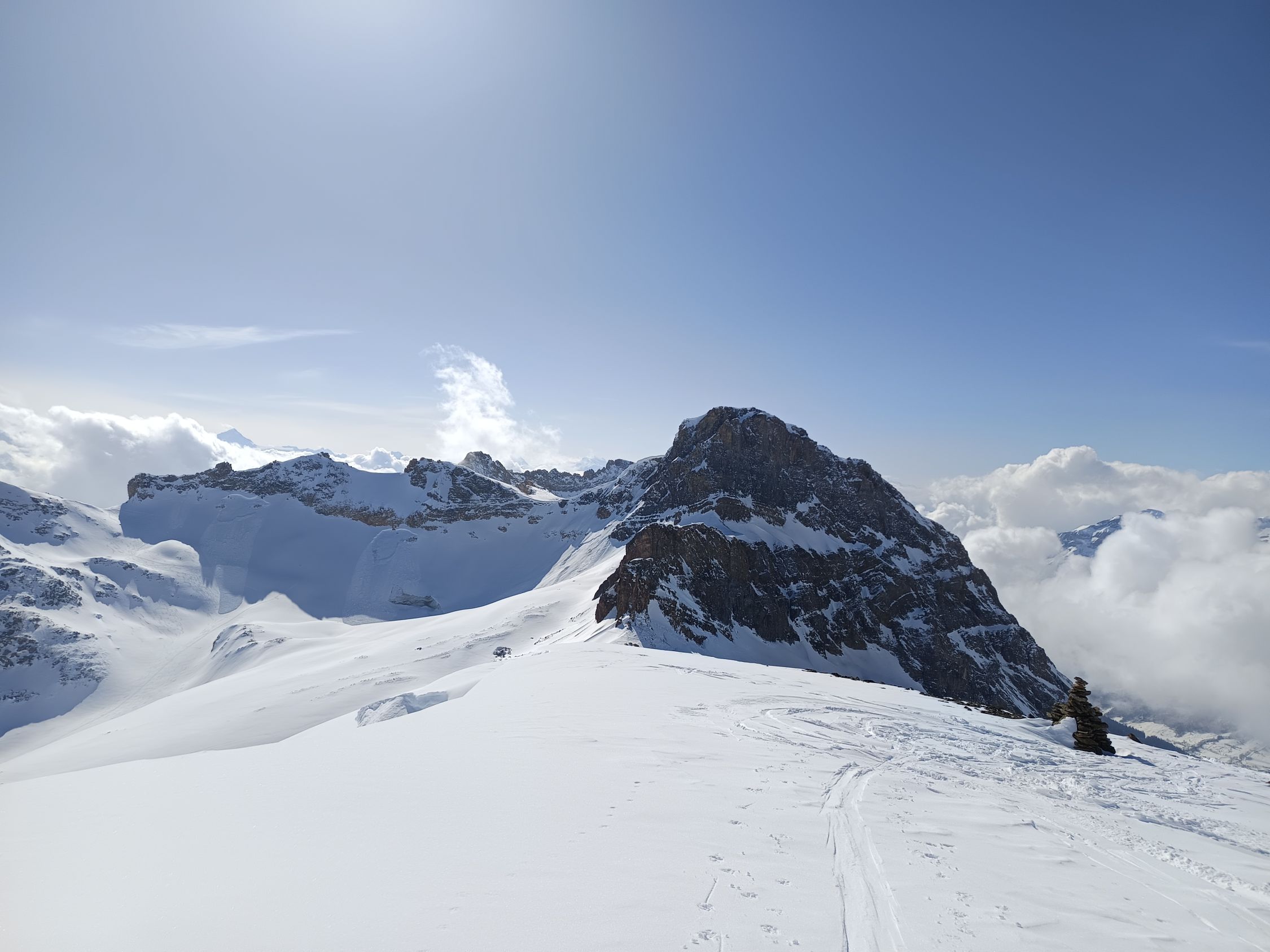 Verhältnisse gut, Gratrücken etwas abgeblasen, man kommt aber um die aperen Stellen drumherum.