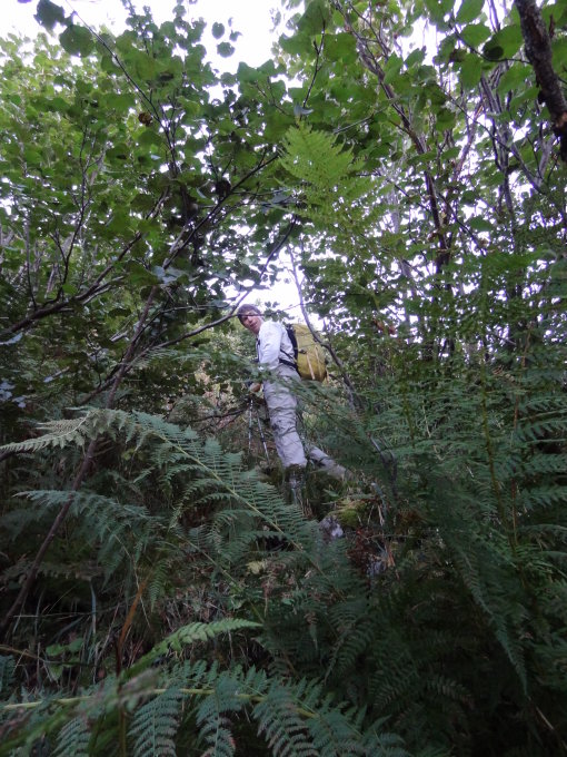 Wenn man alleine auf einer Route unterwegs sein will, ist man hier goldrichtig. Die raren Berichte, welche im Internet zu finden sind, beschreiben allesamt den vegetationslastigen Teil in der Tourmitte ziemlich negativ. Unsere Subjektive Einschätzung war jedoch so: Bis Oberstafel lässt sich mit ein bisschen Spürsinn und Kartenkonsultation der Ausgabe 1973 der alte Weg relativ gut finden. Manchmal hats etwas hohes Gras, weglos ists aber nie. Weiter oben (bis Bockeggen) ist das Gelände wirklich etwas mühsam, da das Gelände recht steil und die Vegetation wirklich üppig ist. Man bewegt sich jedoch fast immer entlang von Wildwechseln, zudem handelt es sich meist um "weiche" Vegetation (Farne, Gras, Gestrüpp). Widerspenstige Legfören, sodass ein Durchkommen fast unmöglich ist, trafen wir eigentlich nirgends an.