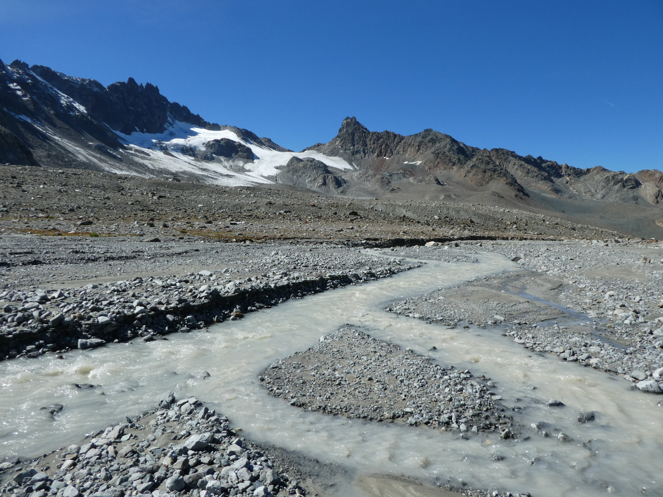 Von der Chamanna da Grialetsch geht es auf der von Sputnik beschriebenen Route zum Piz Sarsura Pitschen. Momentan sind die Verhältnisse perfekt, die Route ist wieder überall schneefrei und trocken. Die Gletscherbäche führen nicht viel Wasser, was wichtig ist, da man sie überqueren muss. Bei viel Schmelzwasser oder nach Gewittern wird ein Überqueren schwierig!