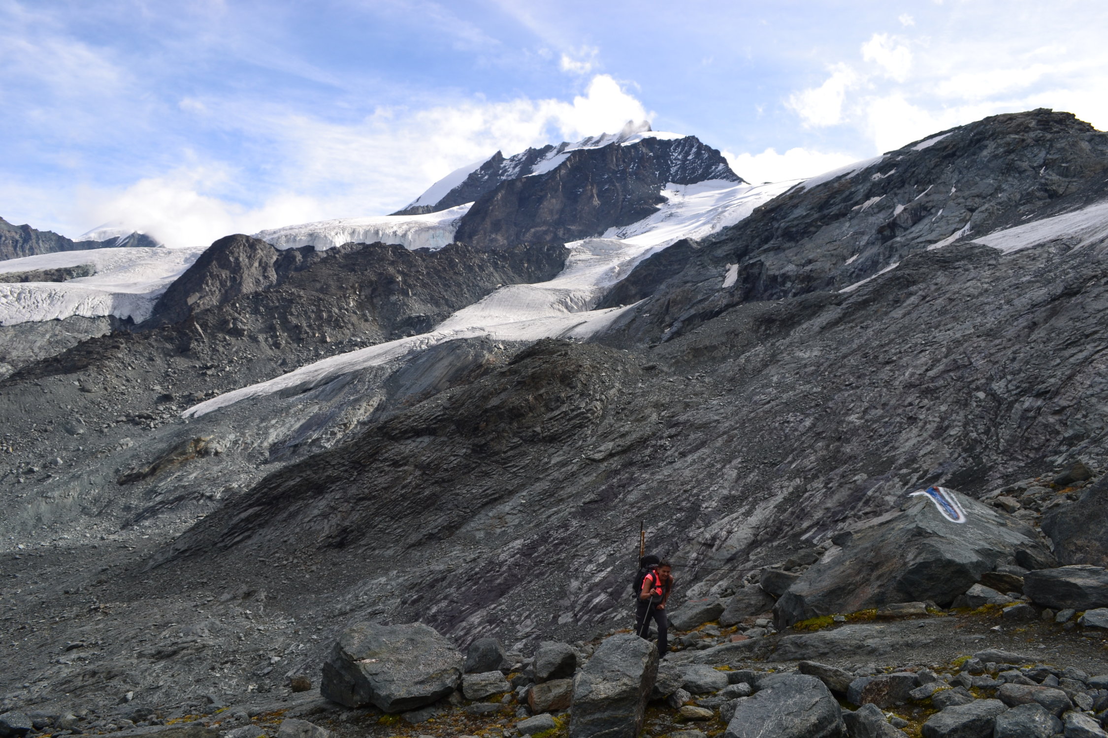 Einzelner Steinschlag auf rund 3000m (bei der Felsstufe). Diese Stelle besser schnell passieren. Abstieg nach Blauherd, leider gestern ab ca 11.30 im Regen.