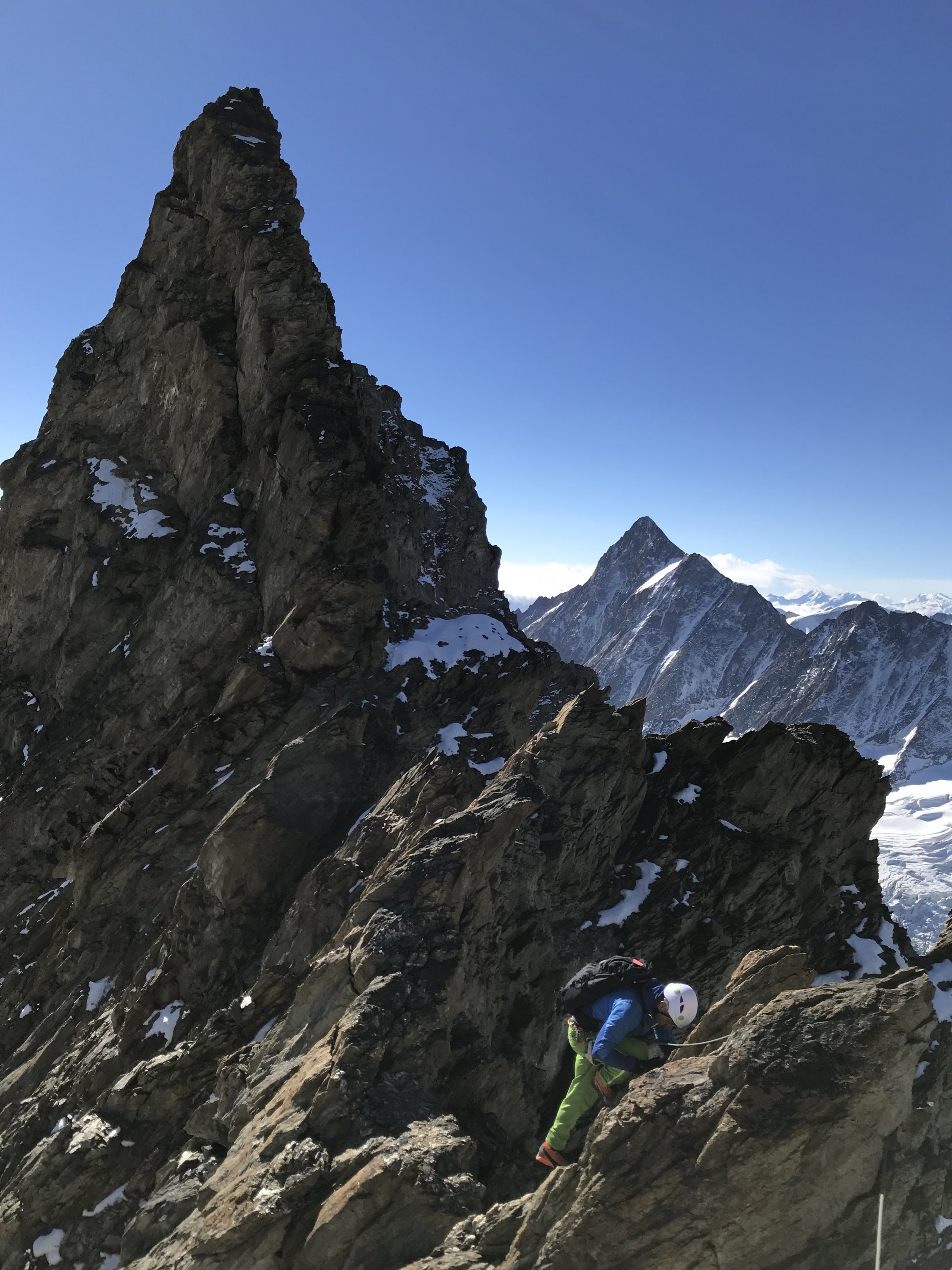 Der Fels aufs Schreckhorn und weiter aufs Lauteraarhorn war trocken und die Steigeisen blieben im Rucksack. An einigen Stellen lag schattseitig etwas Schnee, welcher jedoch überhaupt nicht störte.