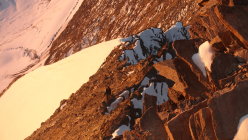Für den Abstieg wählten wir den Weingartengletscher, welchen wir auf ca. 3400m via Südmoräne verlassen haben. Um von der Moräne runter zum Wanderweg zu gelangen muss man noch abklettern und zweimal ist sogar Abseilen (prov. eingerichtet mit Schlingen) fast zwingend.