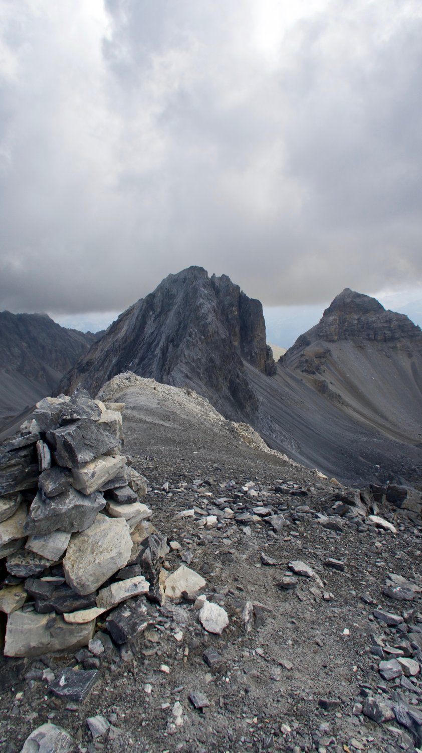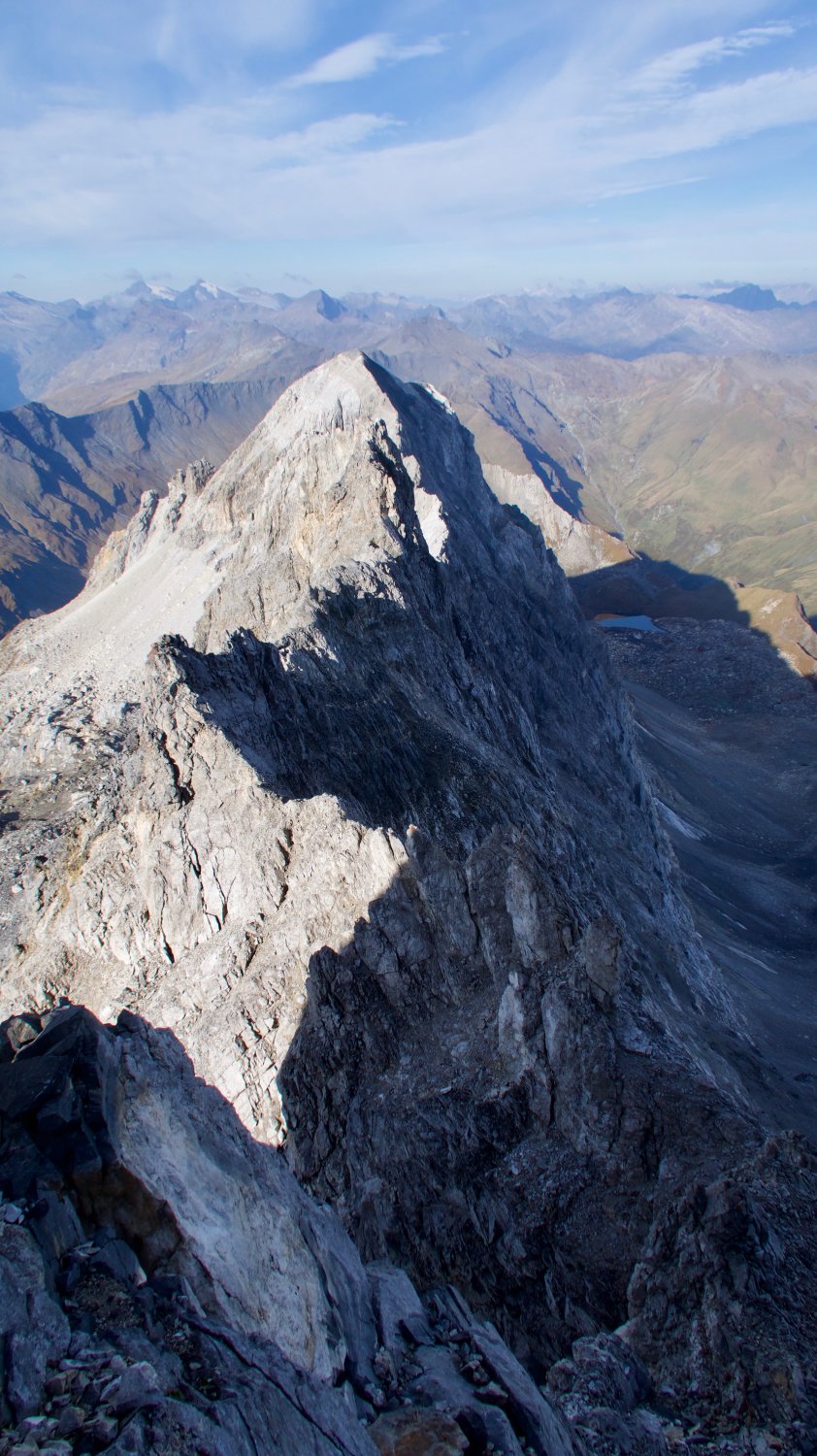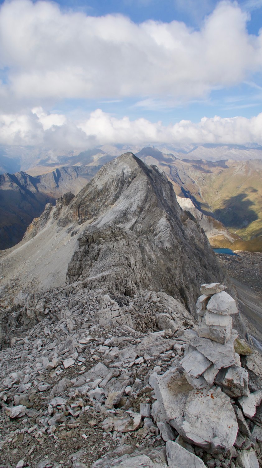 Betreffend dem Grat möchte ich nochmals klar sagen, dass es sich um eine äusserst ernste Sache handelt. Der erste Teil ( ca. 250 Mt sind extrem brüchig, beidseitig sehr ausgesetzt und schwer zu lesen und zu begehen ). Ich brauchte für diese 250 Mt gleich viel Zeit, wie für den Rest ( ca. 4/5 des Grates ) und der Grat ist ca. 1.25 km lang )Auch der Rest ist nicht ohne, oft auch recht ausgesetzt und weite Teile sind brüchig.
