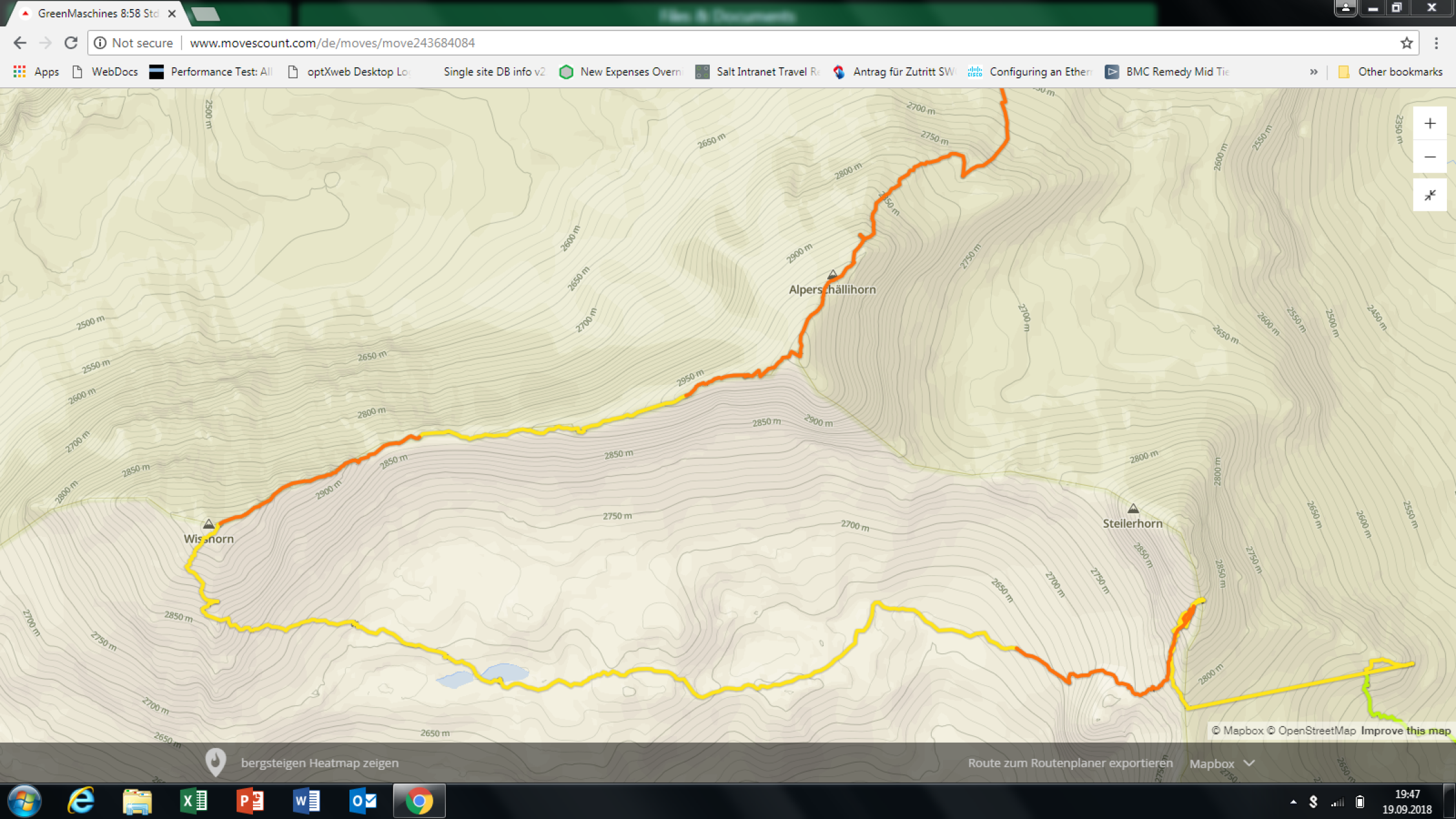 Nachdem ich letzten Samstag mit Kurt vom Wisshorn her eingesteigen war und dann kurz vor Schluss schluss war, liess mich dieser Grat nicht mehr los. Ich war ja am Samstag soweit, dass ich mir sicher war, dass es gehen würde. Also musste dies restlos geklärt werden und das habe ich heute durchgeführt. Gemäss Wetterbericht soll ja am Samstag Schnee bis gegen 2000 Meter runter fallen, dann wäre es vermutlich gelaufen für dieses Jahr.