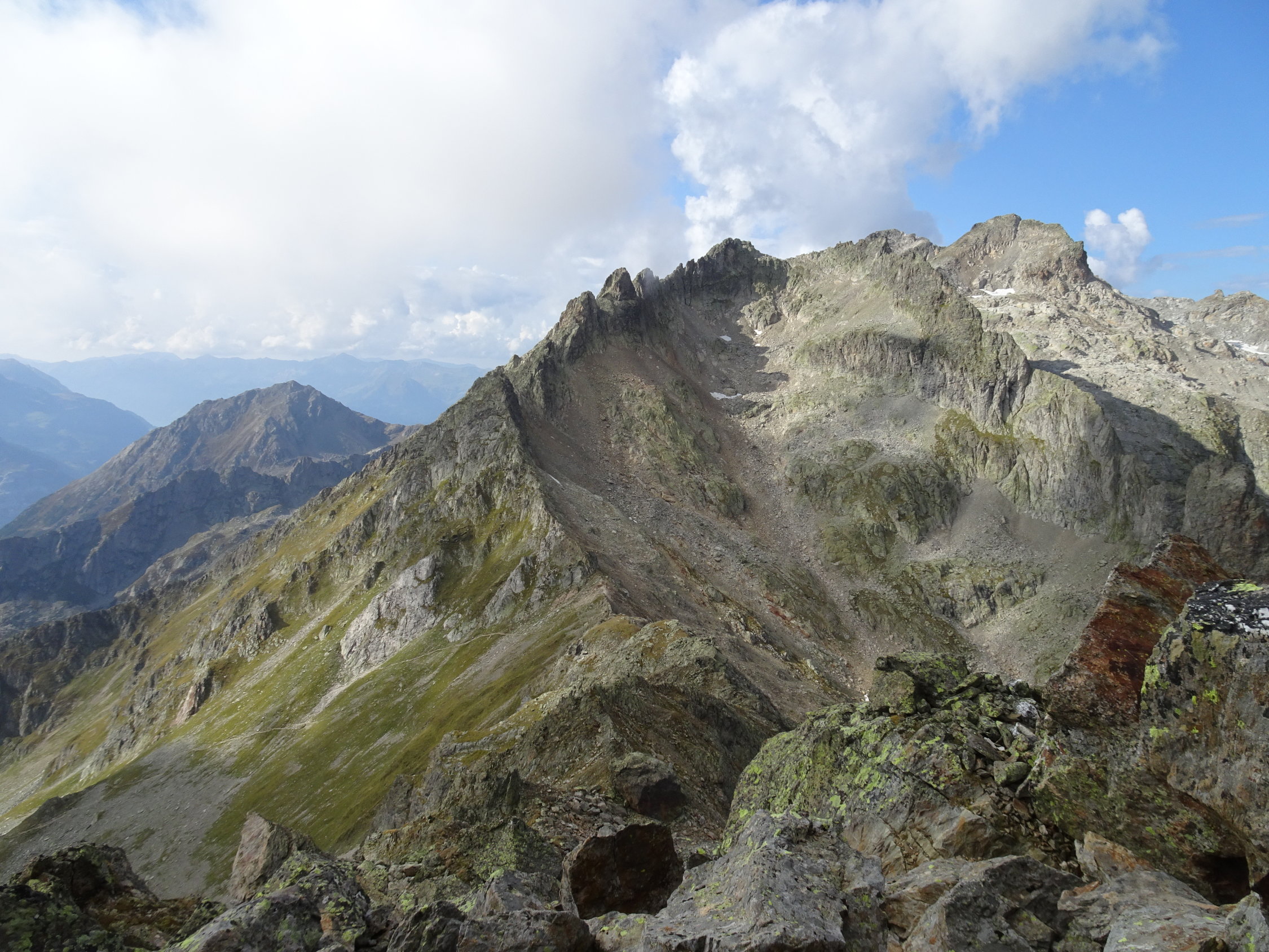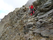 Ein steiniger Gratweg, welche die ganze Zeit Konzentration erfordert. Die Kletterschwierigkeiten sind gering, II-er Stellen können gesucht werden. Der Abstieg erfordert fast gleich viel Zeit, wie der Aufstieg.