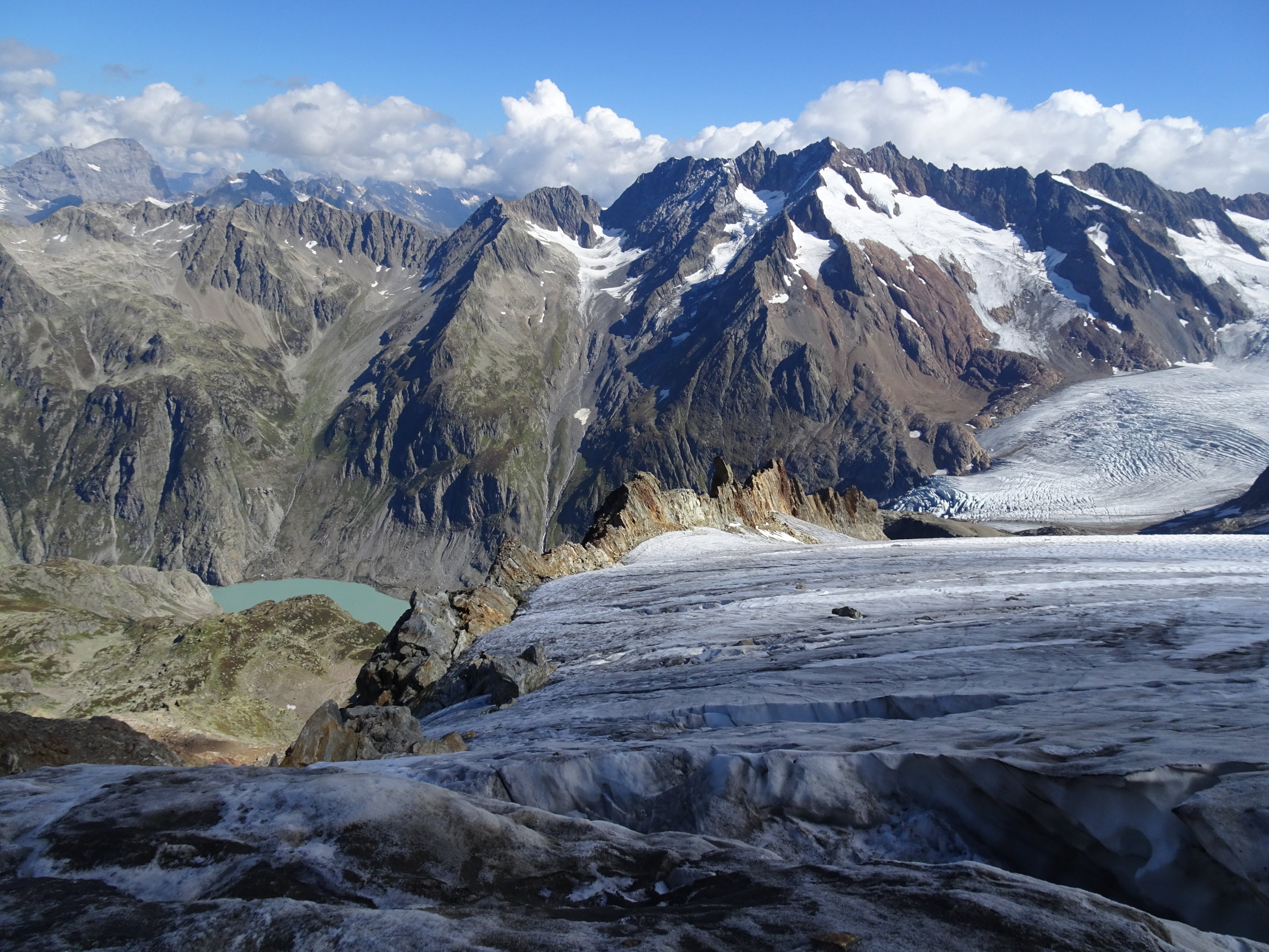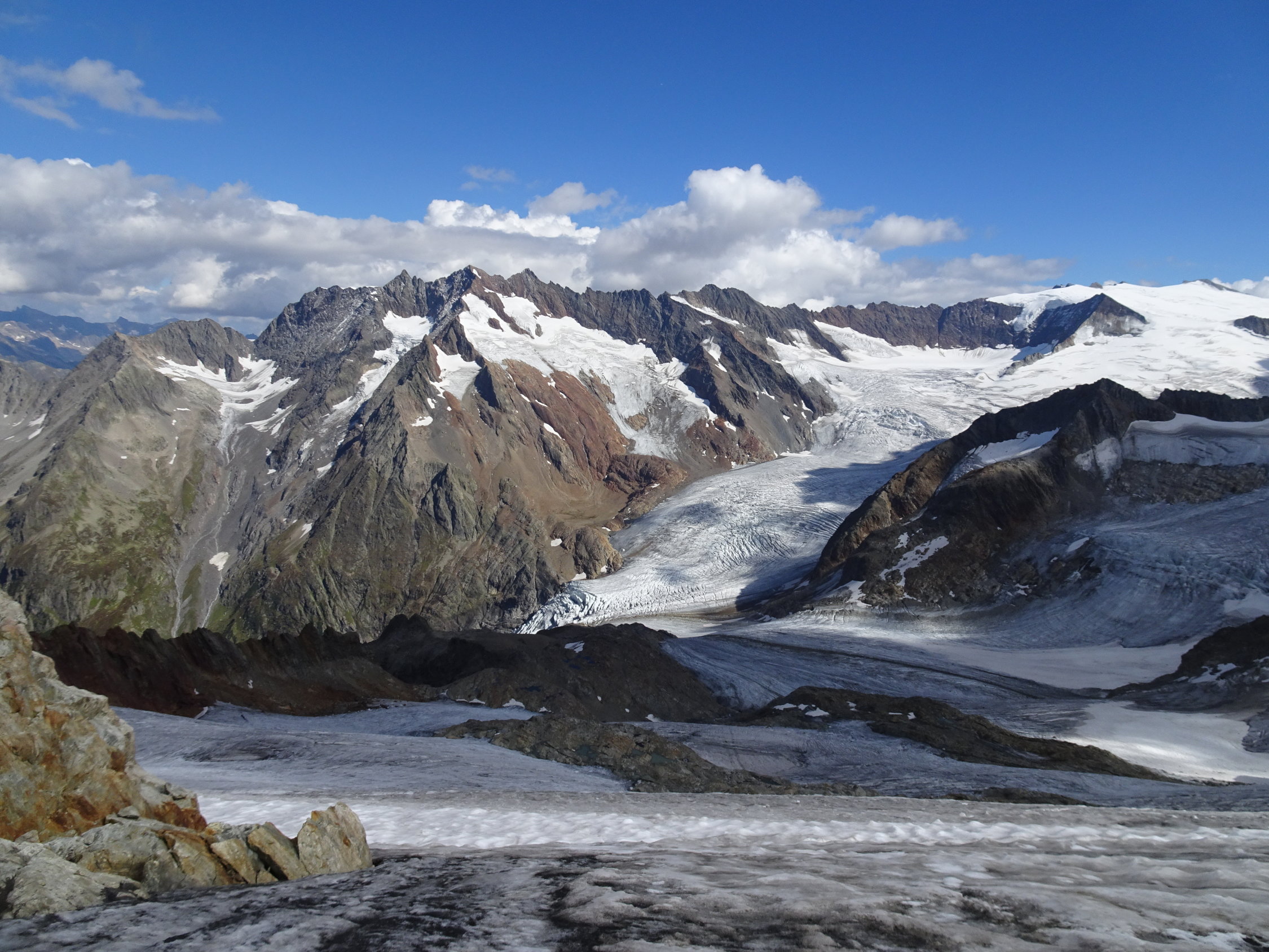 Nachdem ich am 17.7.2005 erstmals bis zum P 3023 gestiegen bin und mangels Steigeisen und Mut nicht bis zum Gipfel kam, fehlten mir bis gestern die letzten 100 m zum Steinhüshoren. Umso mehr freut es mich, diesen schönen Aussichtberg doch noch besucht zu haben.