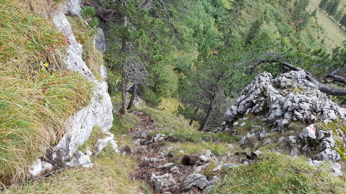 bei der Querung zum Wiggis zeitweise auch nasse Stellen, die heiklen Passagen sind Ketten montiert.