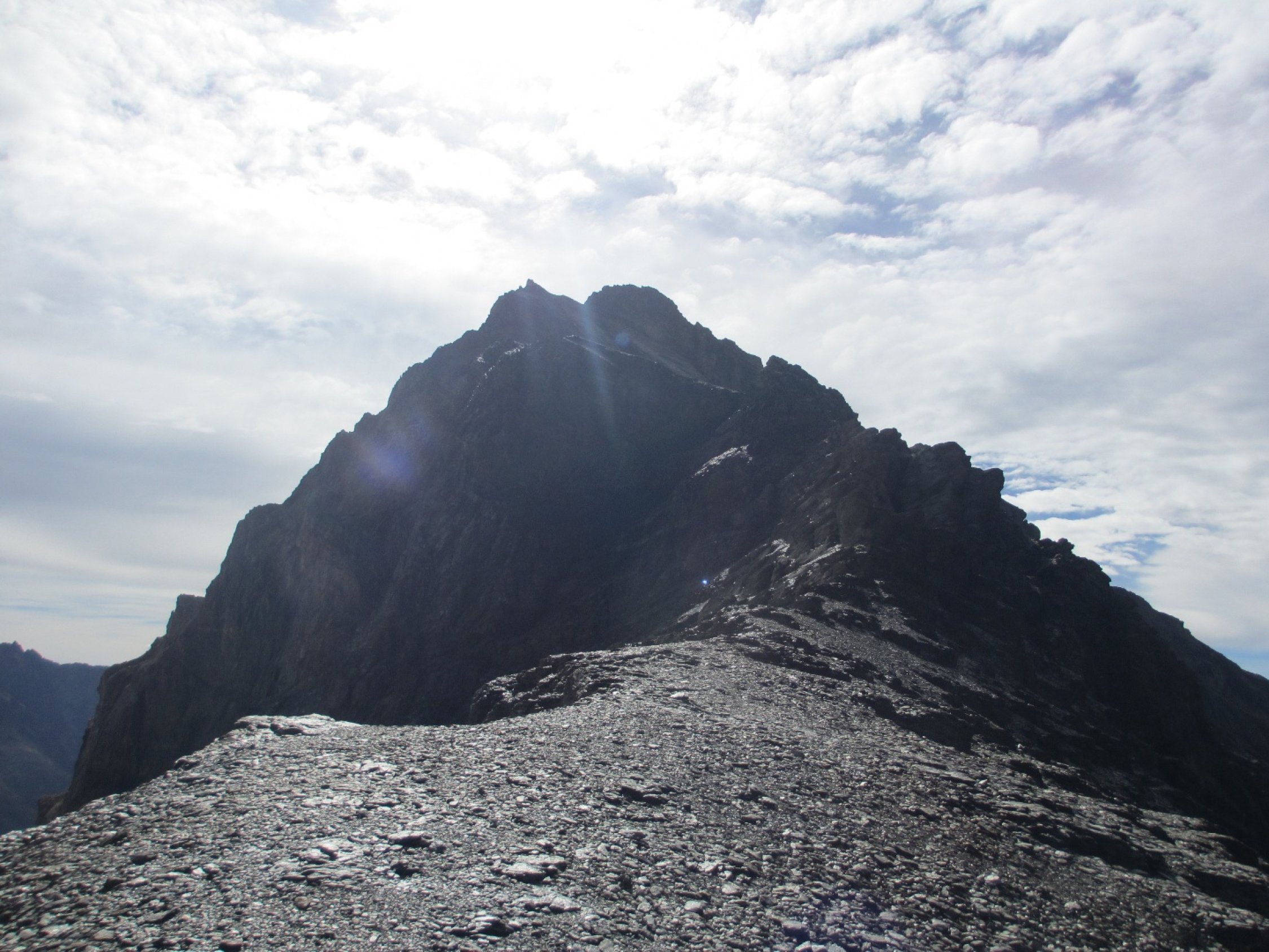 Da der Grat etwas brüchig ist halte man sich immer am Grat und weicht nicht in die Flanken aus. Mit umsichtigem gehen, schöne Tour.