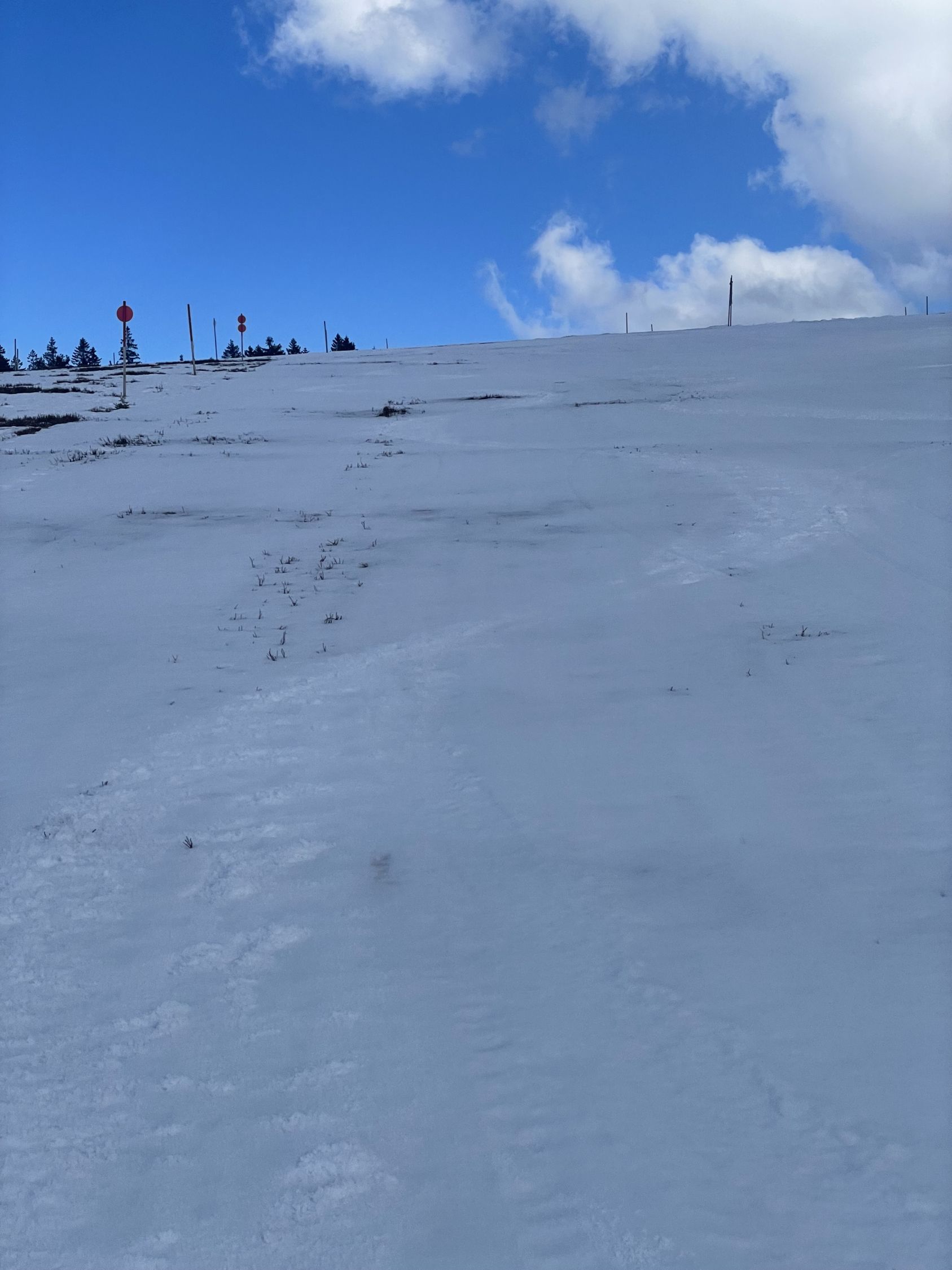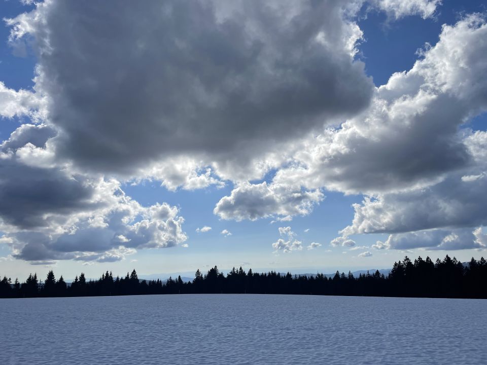 Gestern war der letzte Tag mit Pistenbetrieb am Stübenwasen. Heute alle Pisten noch da und glorioses Wetter und Ruhe. Die Schneelage ist besser, als man bei der Anfahrt denkt, und die Schneequalität war heute top - leicht angesulzt und im Schatten hart, auch am Nachmittag noch. Es habe nachts sehr gut gefroren, sagte mir der einzige andere Tourengänger, den ich heute traf. Ich bin zweimal aufgestiegen und erst die sogenannte Damenabfahrt gefahren und dann noch den Stübenwasenhang selbst. Beides gut.