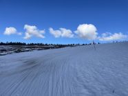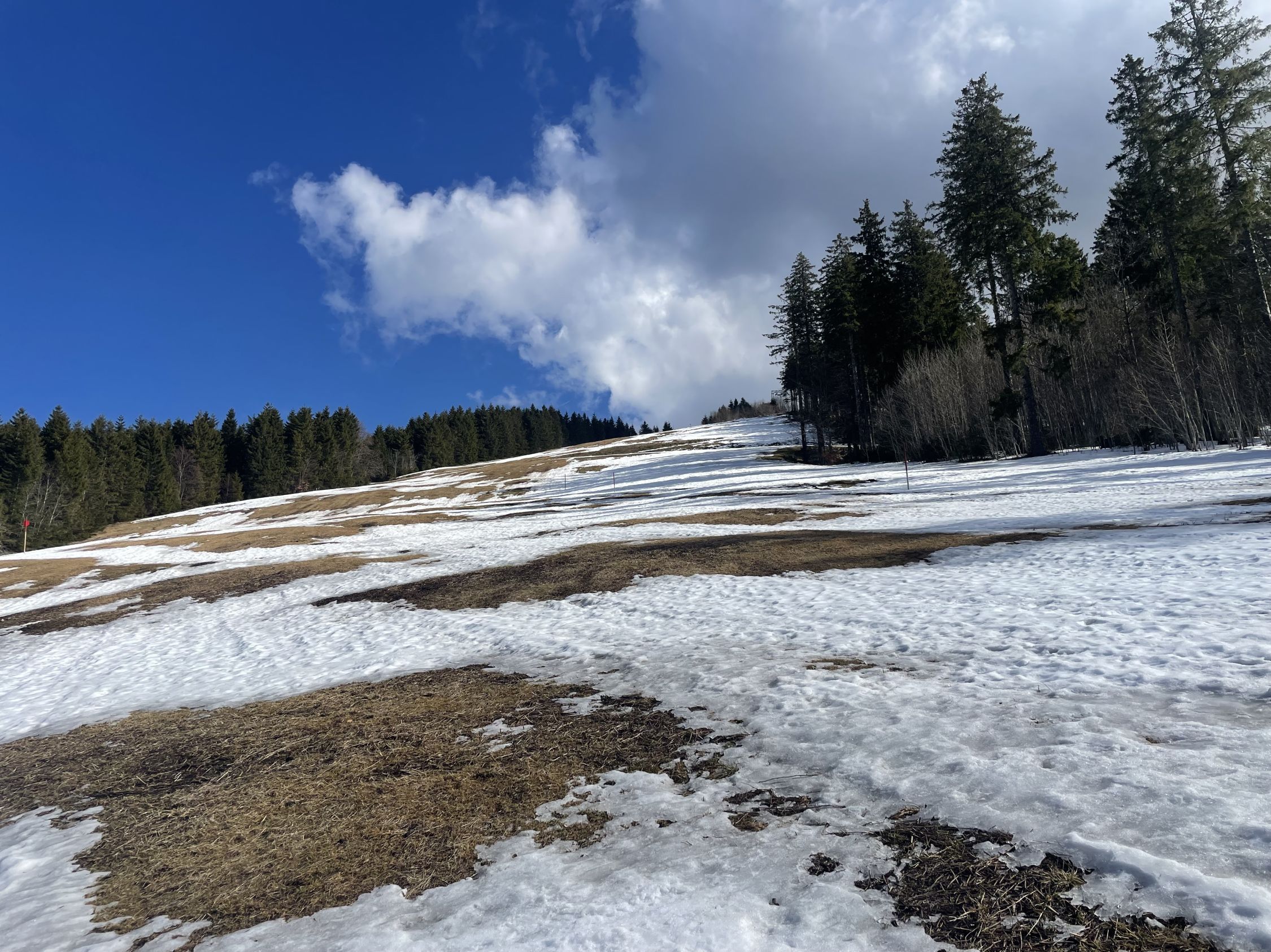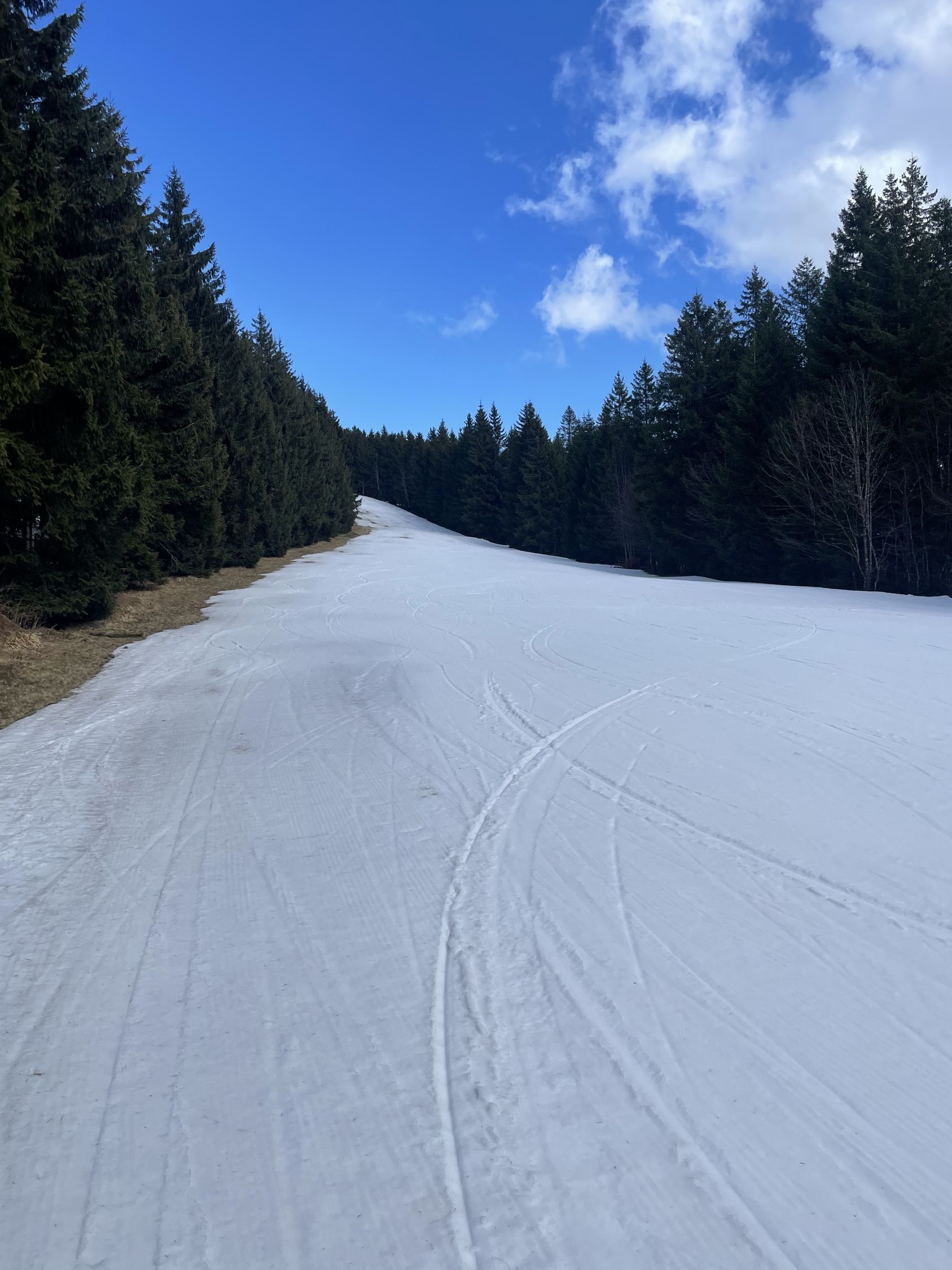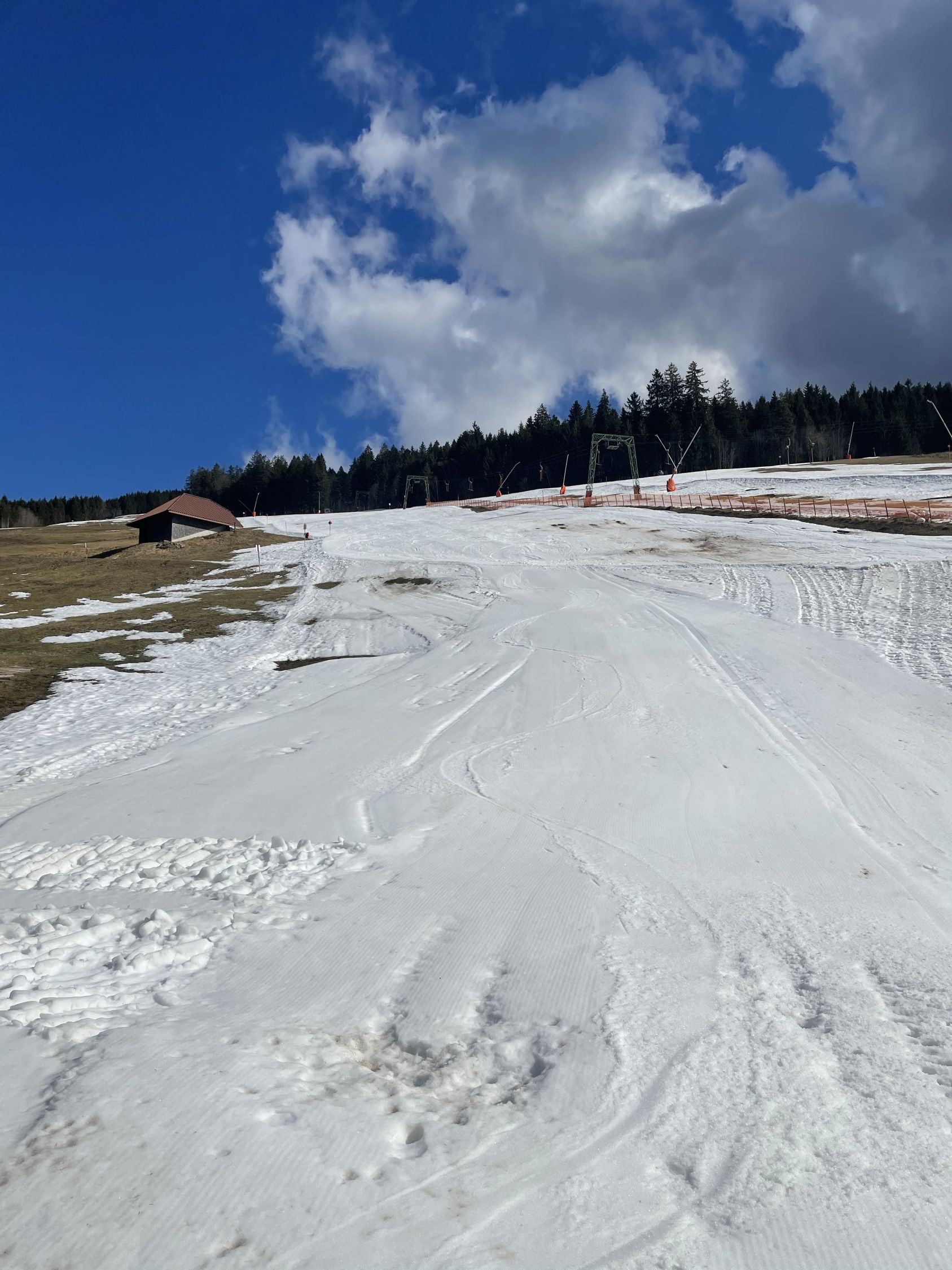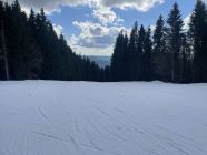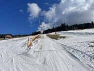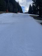 Der Kunstschnee unten hält noch lange, oben je nach Piste teils löchrig teils gut gedeckt. Lohnend.