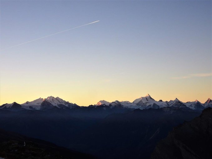 ab Sunnbüel sehr zäher, feuchter Nebel dazu kalter und starker Ostwind. Die Nebelobergrenze gestern am späten Nachmittag und Abend bis auf ~2600m. Die Nacht mit klarem Himmel und -6°. Wind stark abnehmend mit nur noch ganz leichter Brise. Daher angenehm für die Nacht im Schlafsack.